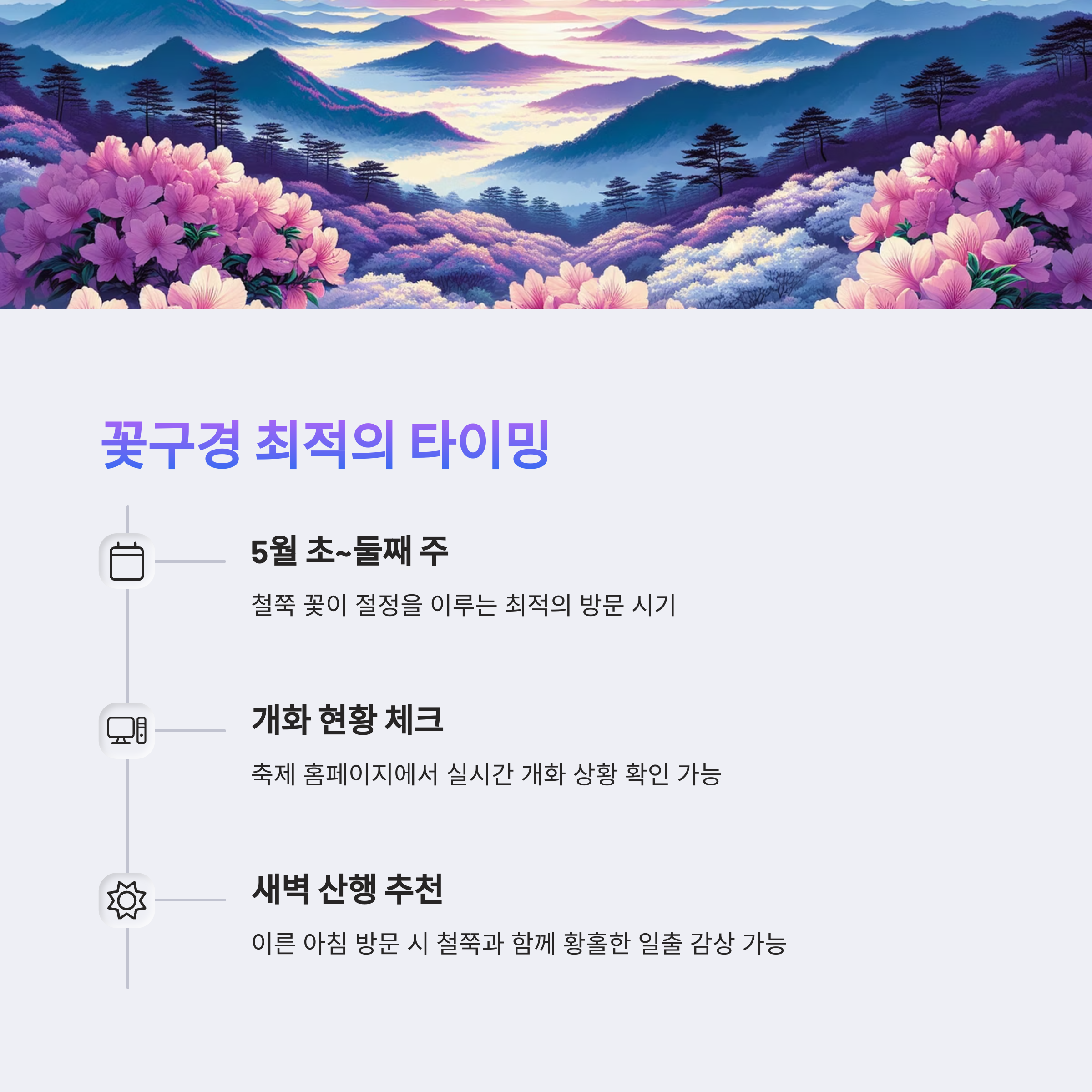 | 5월 황홀한 철쭉이 만개하는 국내 대표 봄 축제 | 전동카트·해설투어 제공, 휠체어 동선 완비 | 자연과 문화를 함께 체험할 수 있는 계절 추천지 |