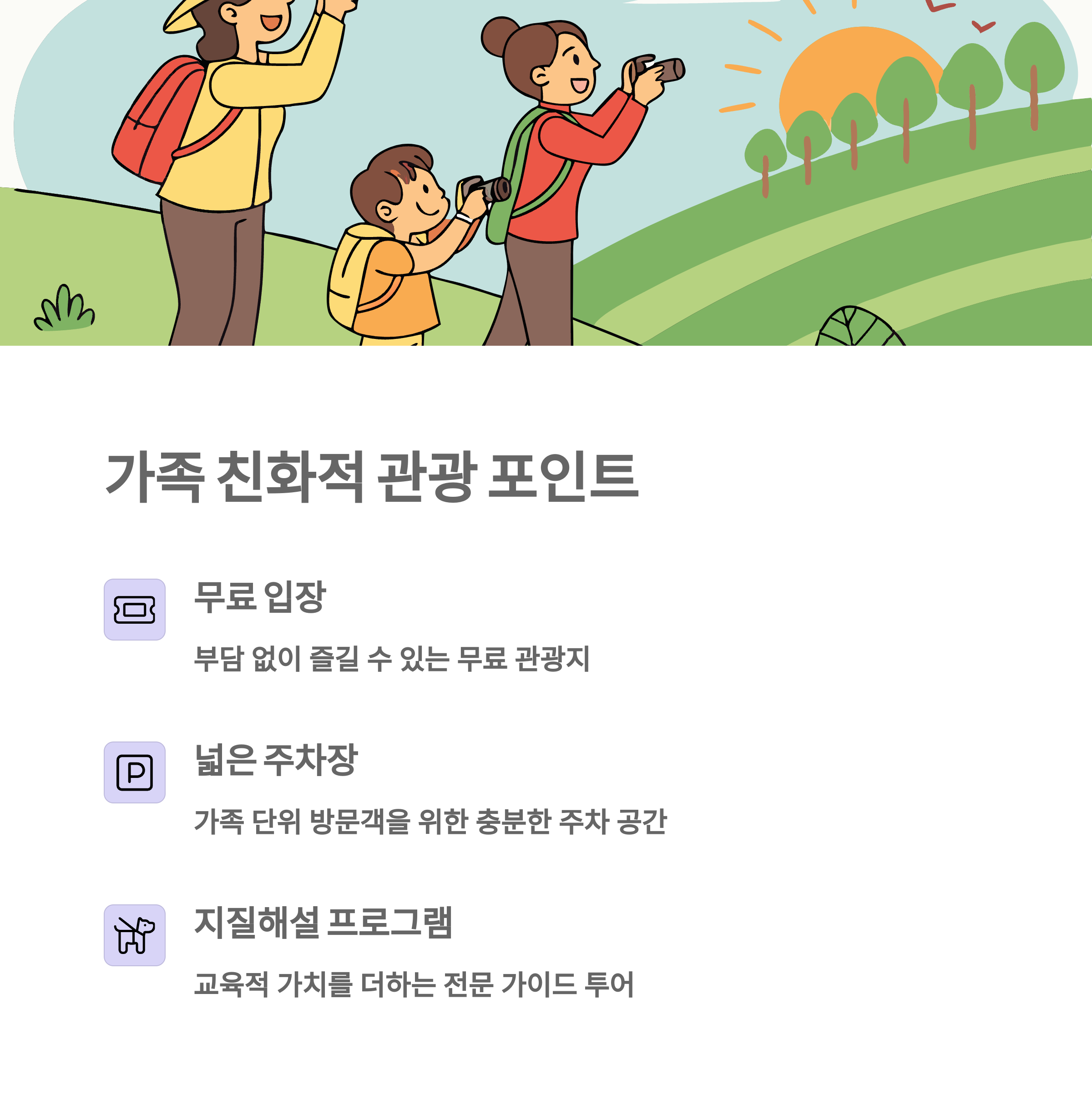 | 경관조명 설치 예정, ICT 콘텐츠 도입 | 무료 입장, 접근성 뛰어남, 전기차 충전소 완비 | 가든페스타, 생태경관단지, 캠프장 연계 가능 |
