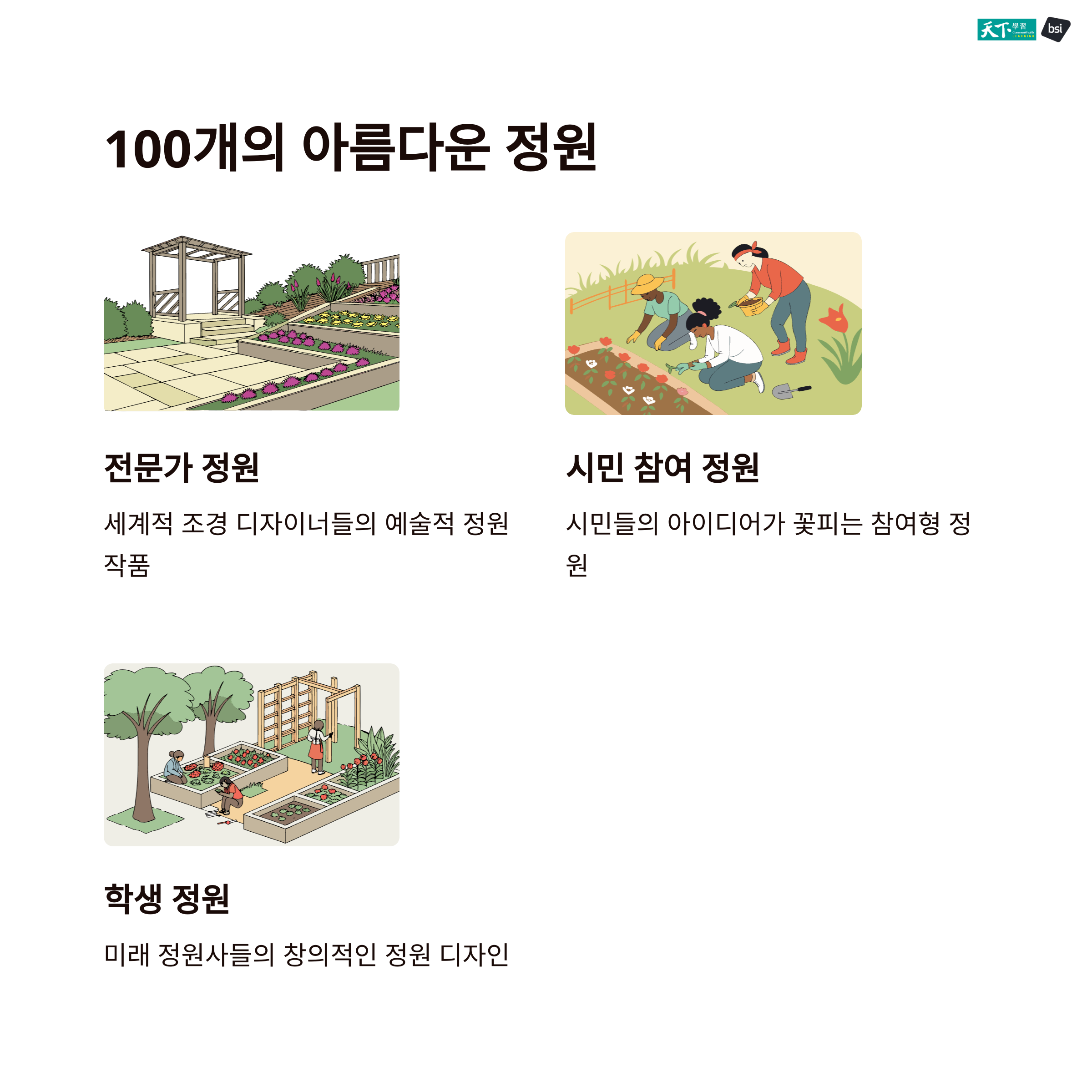 특히 눈에 띄는 점은 학생과 시민이 직접 참여하는 정원 조성입니다. 고등학생과 대학(원)생을 대상으로 한 ‘학생동행정원’과, 일반 시민이 참여하는 ‘시민동행정원’이 운영되어 실제로 정원을 설계하고 조성하는 소중한 경험을 제공합니다. 참가자들은 전문가의 멘토링도 함께 받을 수 있어, 정원문화에 대한 이해와 애정을 깊이 있게 키울 수 있습니다.