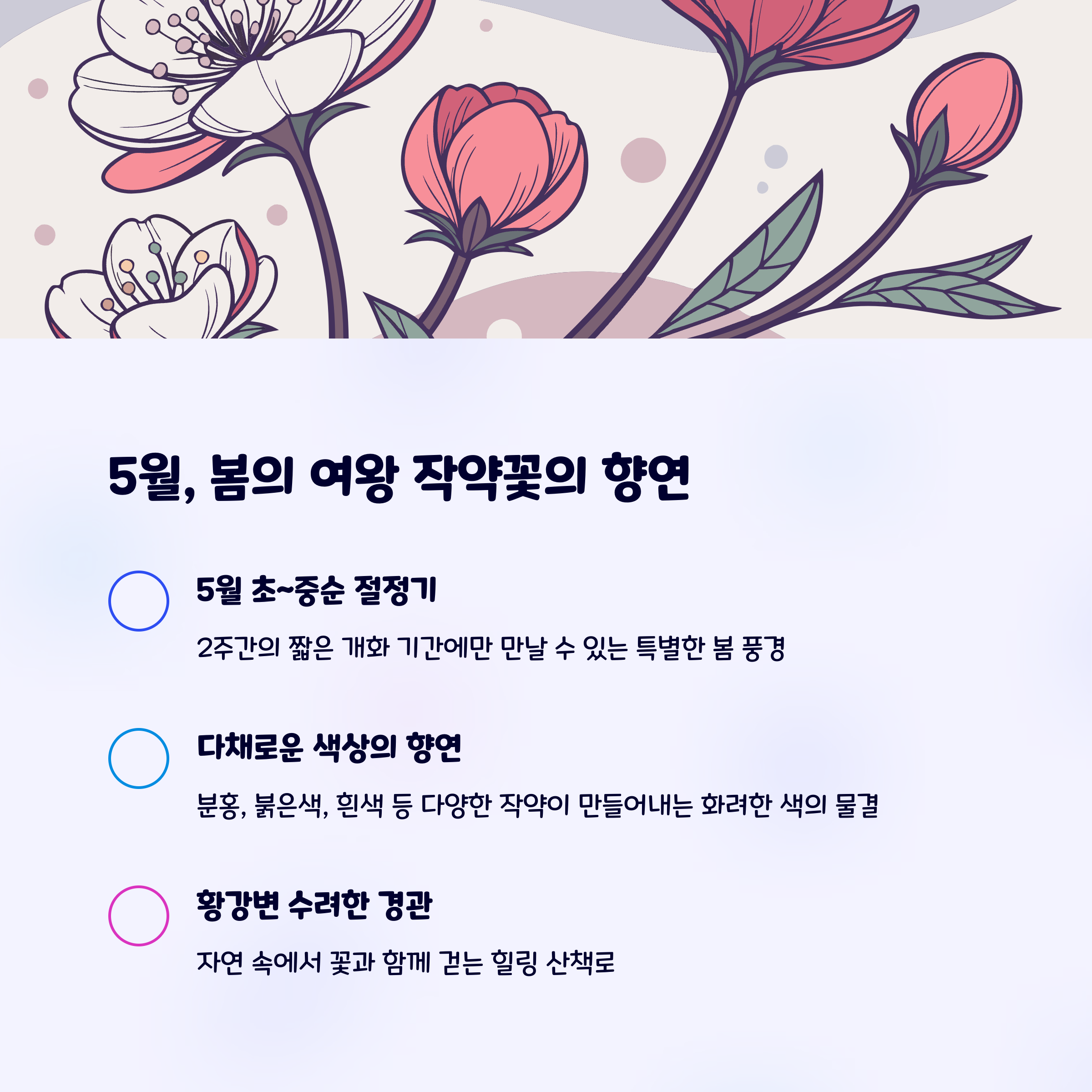 | 황강마실길 트레킹 | 작약꽃 인생샷 포토존 | 소품 대여 서비스 |