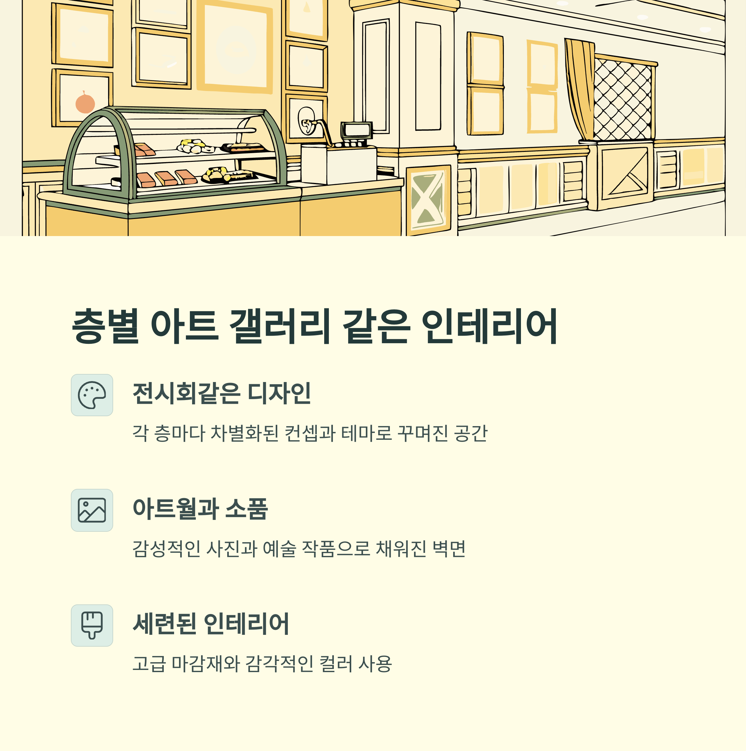 | 모래시계 포토존 | 원두 선택 | 층별 테마존 |