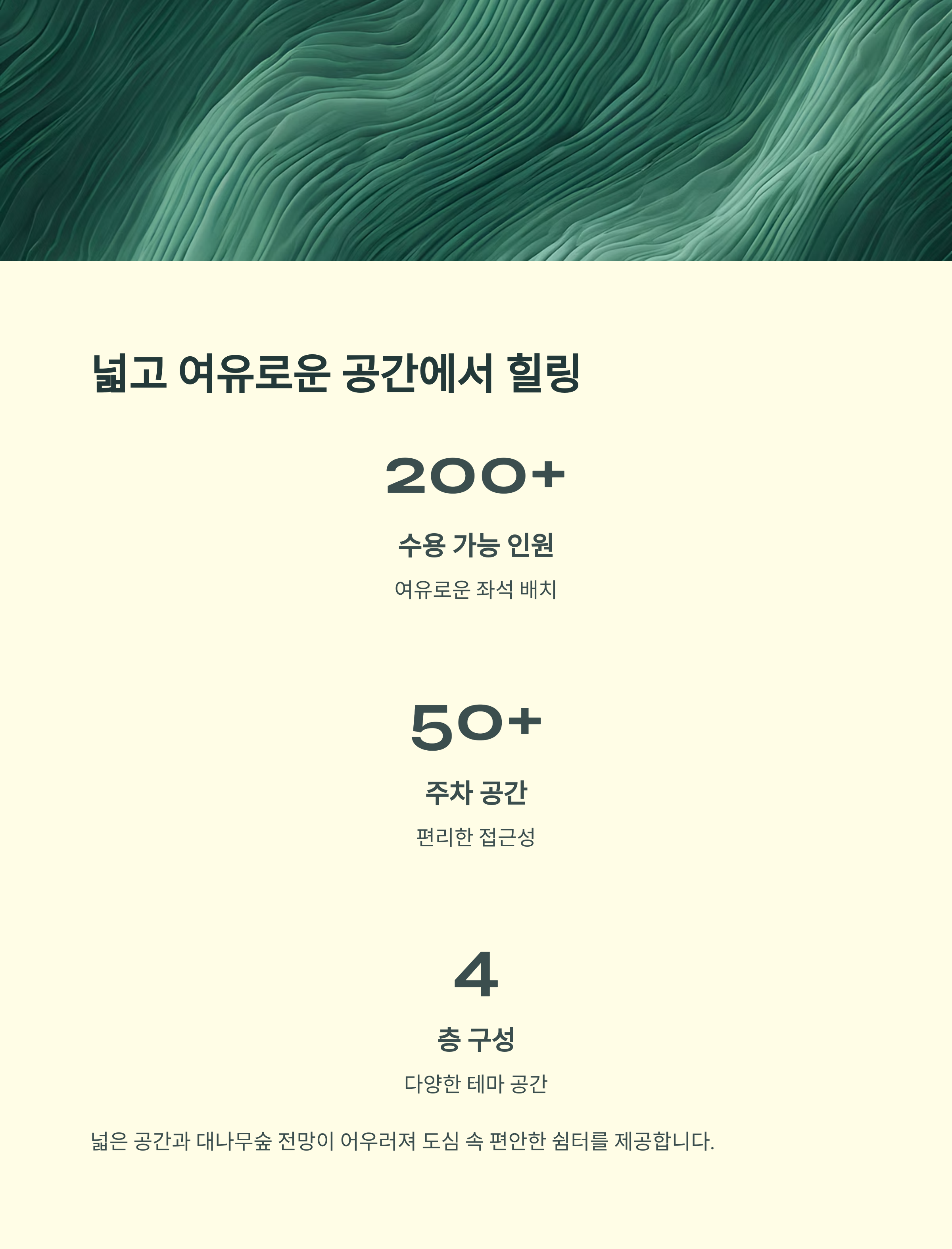 타임투비는 단순한 카페가 아닙니다. 각기 다른 분위기를 가진 4개 층의 테마 공간은 마치 하나의 복합 문화 공간에 들어온 듯한 느낌을 줍니다. 지하 1층은 은은한 조명 아래 집중하기 좋은 분위기이며, 1층은 탁 트인 창으로 보이는 대나무숲과 정원이 마치 자연 속에 있는 듯한 느낌을 선사합니다. 2층의 비스트로 공간은 브런치에 최적화된 레이아웃과 감각적인 식물 인테리어가 돋보이며, 루프탑은 자연을 온전히 누릴 수 있는 힐링 공간입니다.