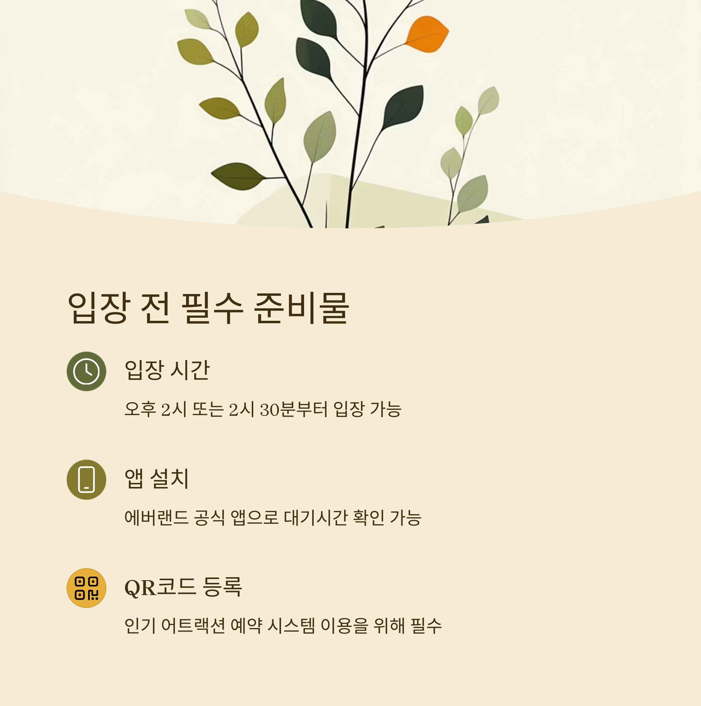특히 인기 어트랙션 예약 시스템은 QR코드 등록을 완료해야 이용할 수 있어 사전 준비가 핵심입니다.