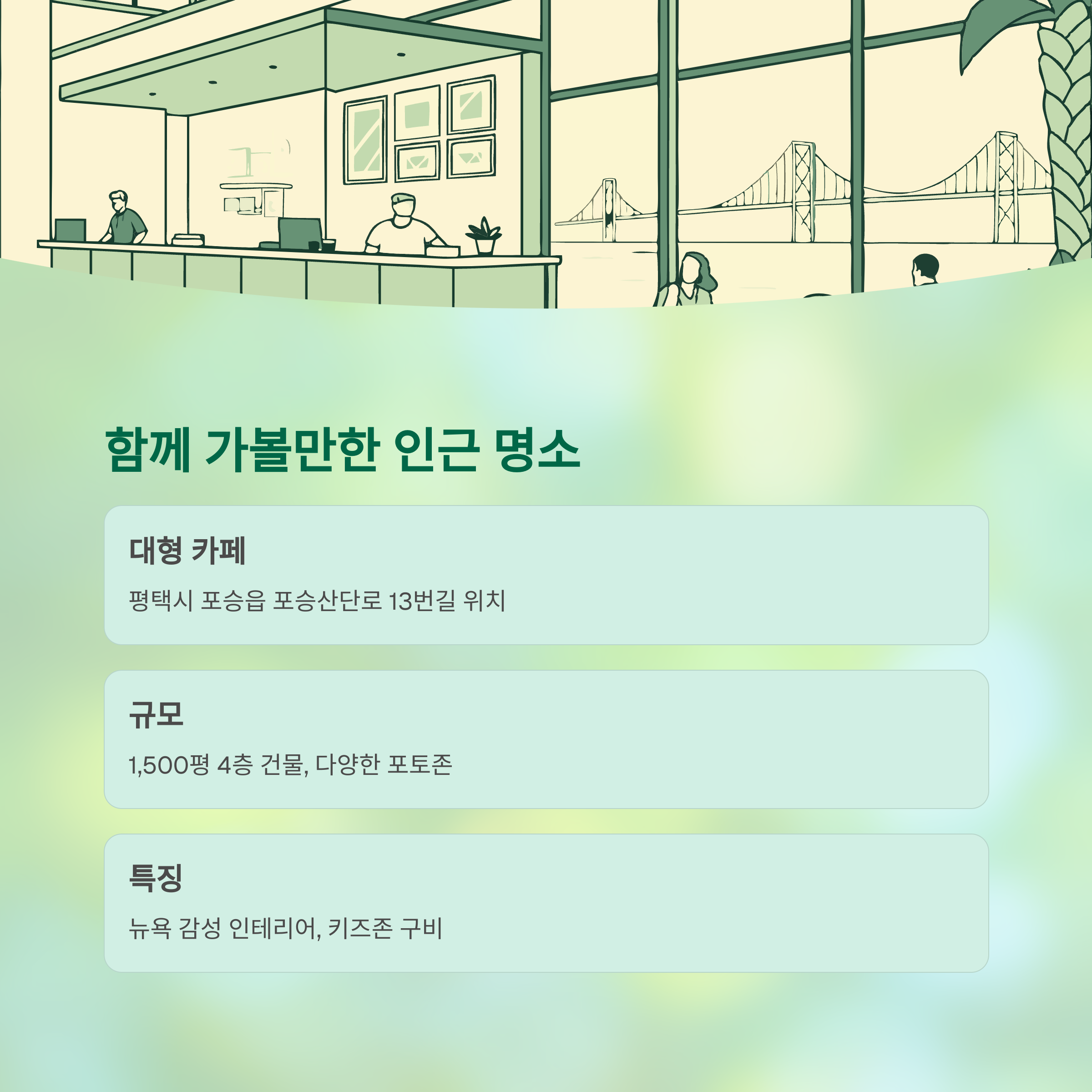 평택시 포승읍 포승산단로 13번길에 위치한 대형 카페도 추천드립니다.