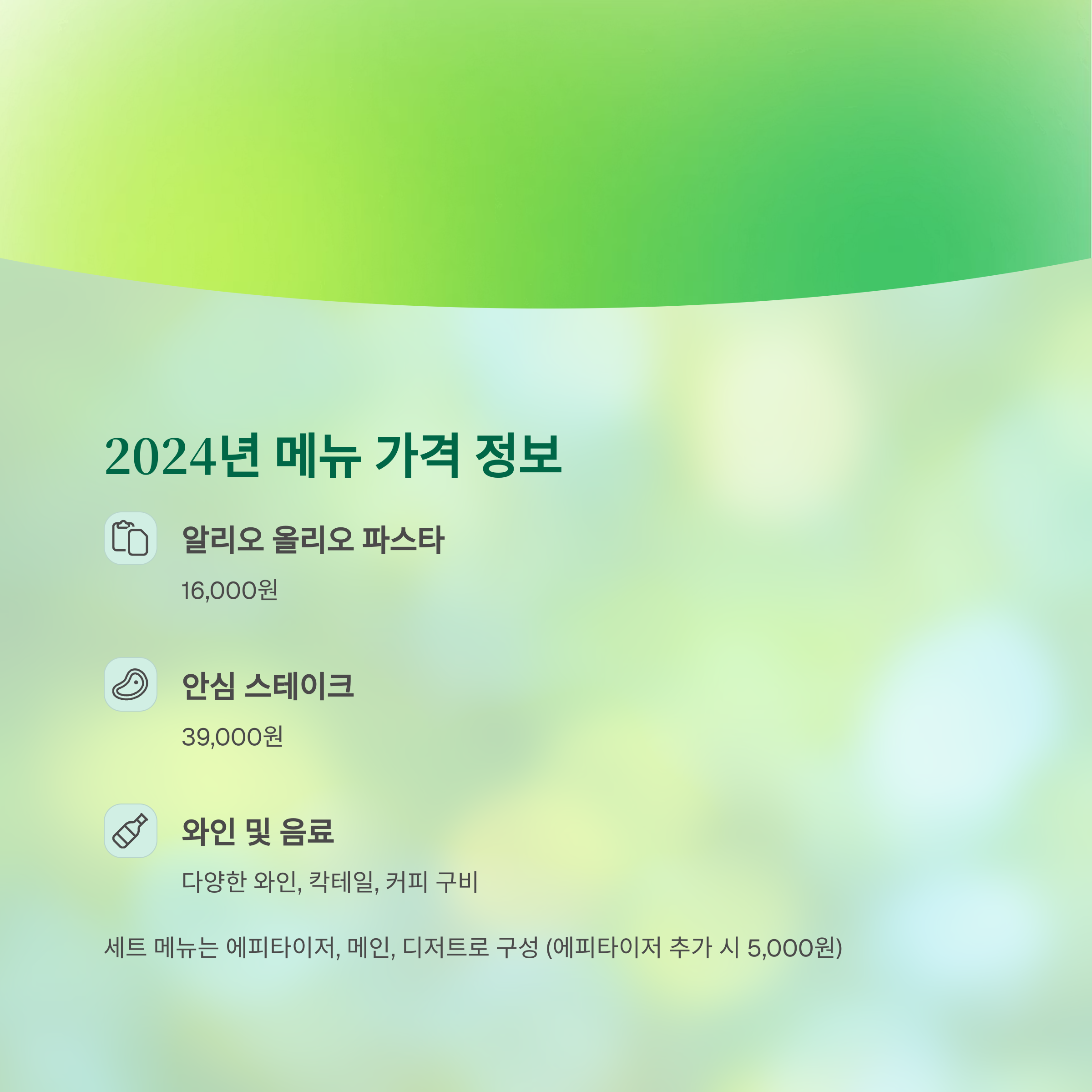 세트 메뉴는 에피타이저, 메인, 디저트가 구성되어 있으며