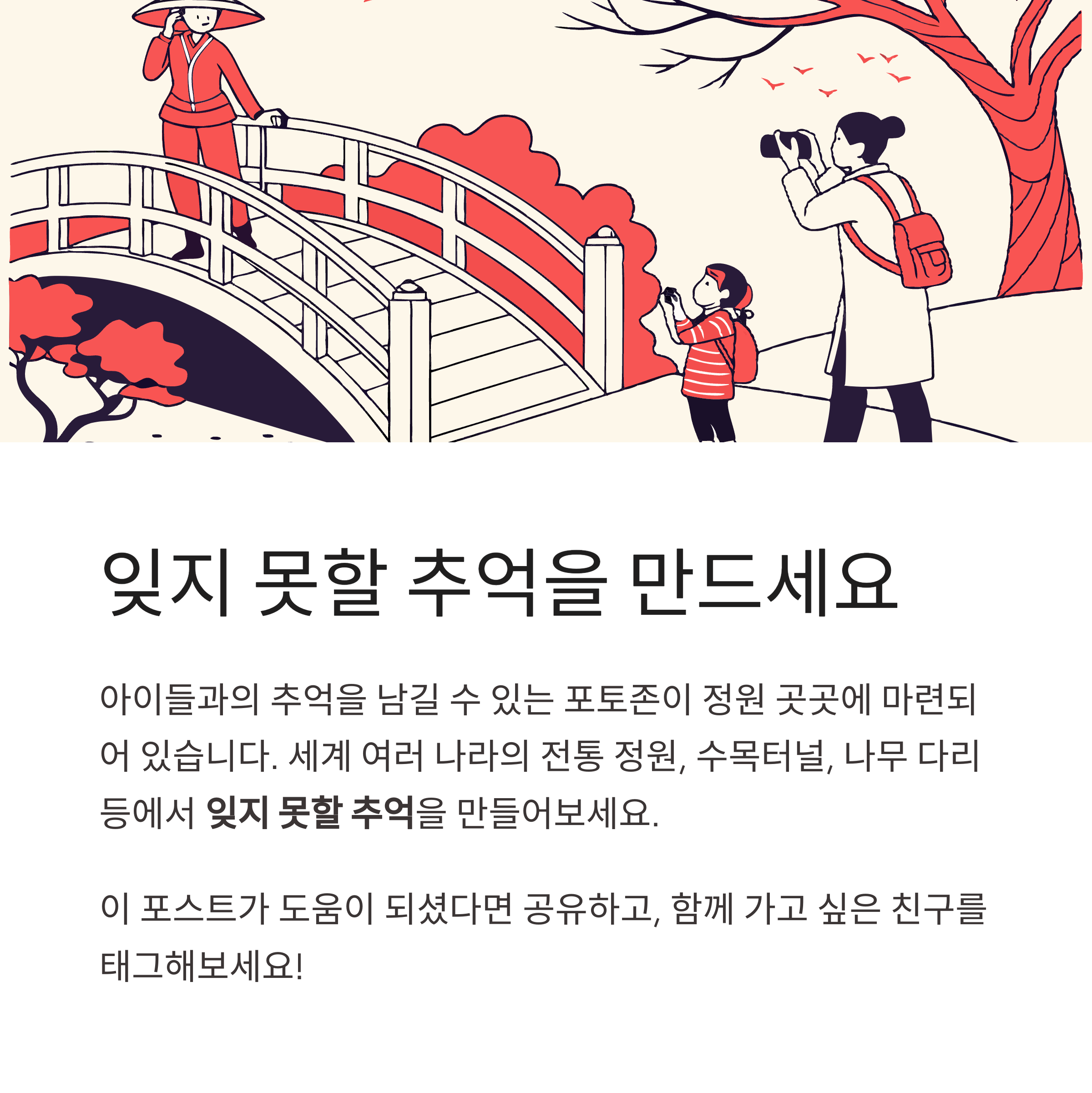 포토존이 정원 곳곳에 마련되어 있습니다.