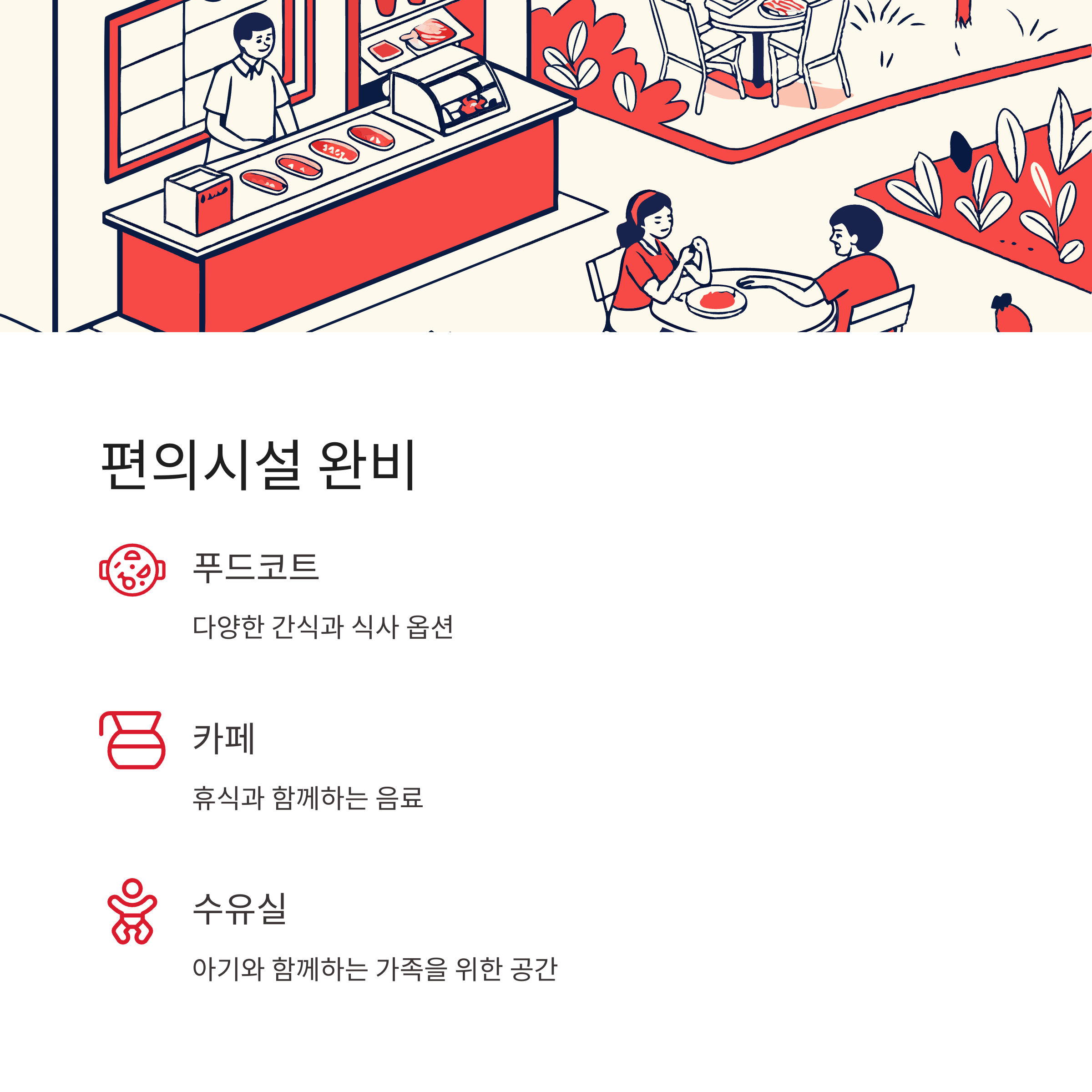 편의점과 화장실, 수유실도 잘 갖춰져 있어