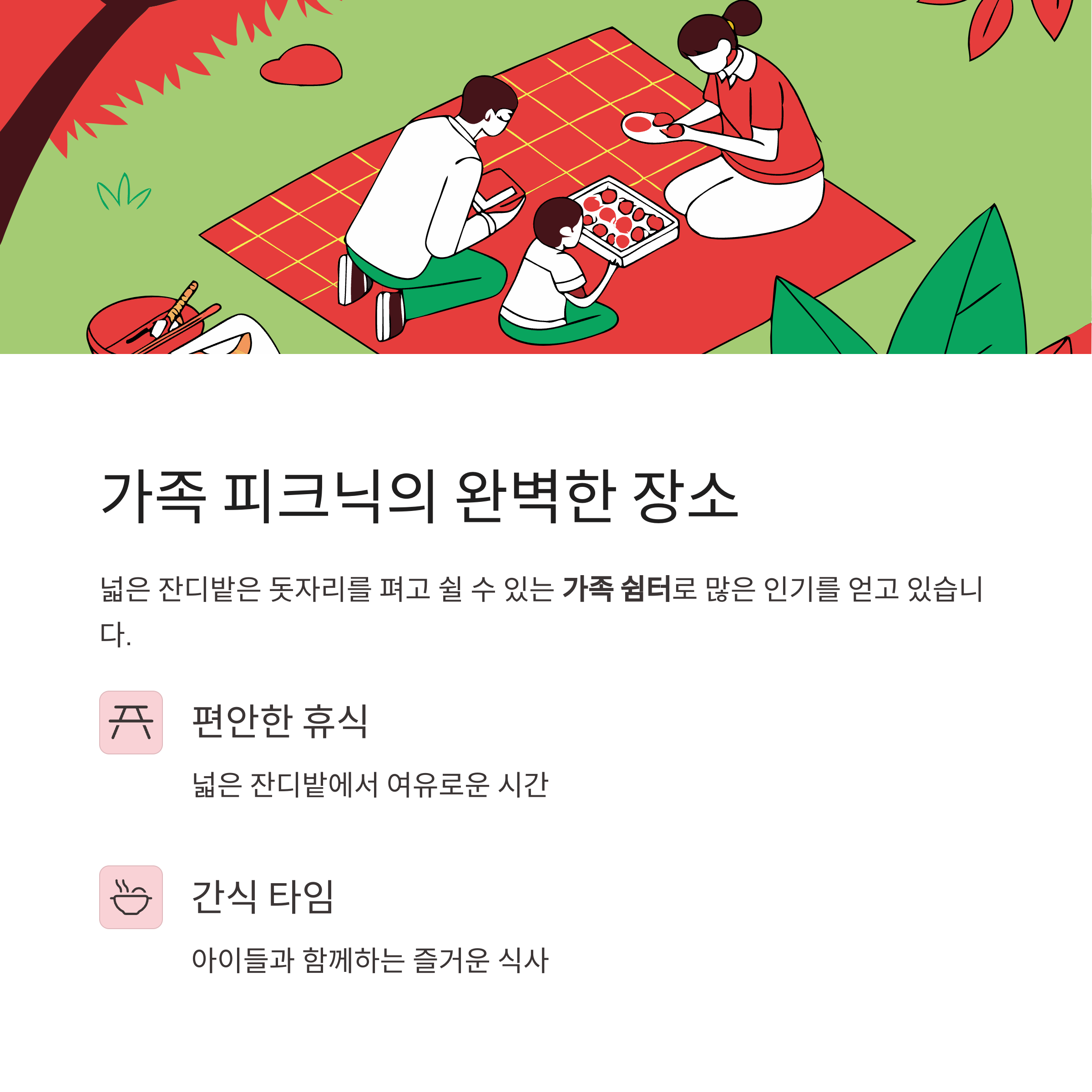 돗자리를 펴고 쉴 수 있는 가족 쉼터로도