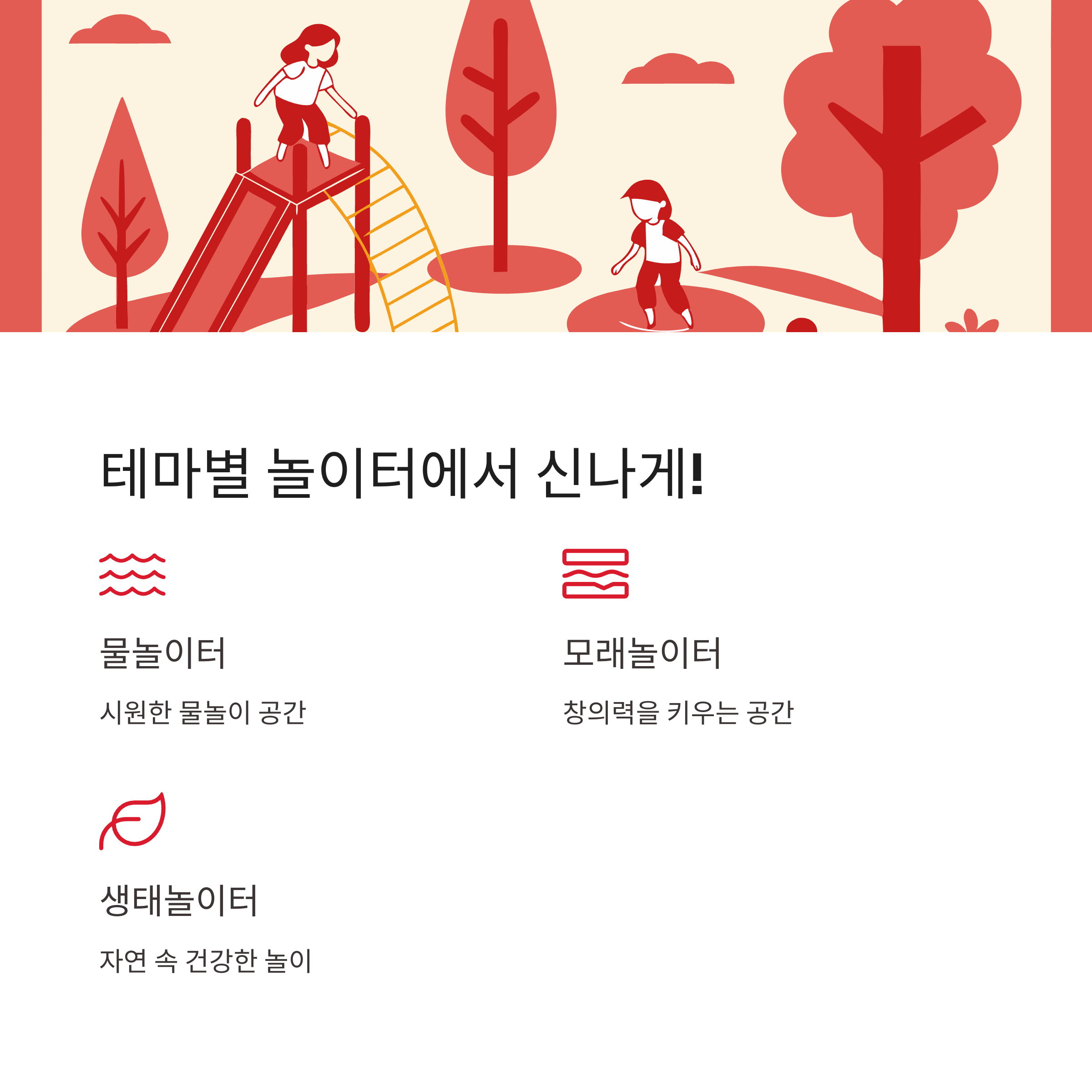 물놀이터, 모래놀이터, 생태놀이터 등
