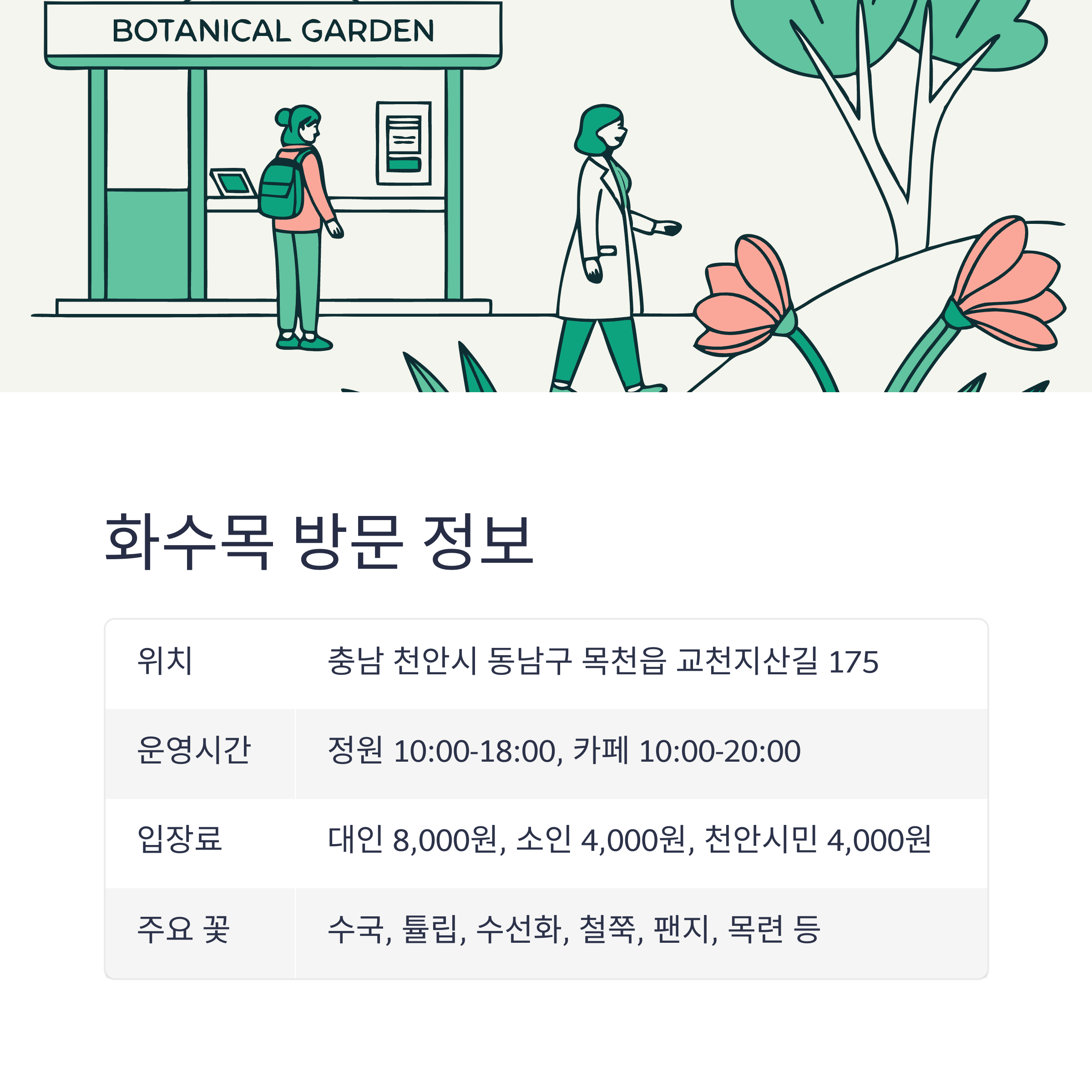 "천안 수목원", "화수목", "수국 명소" 키워드가