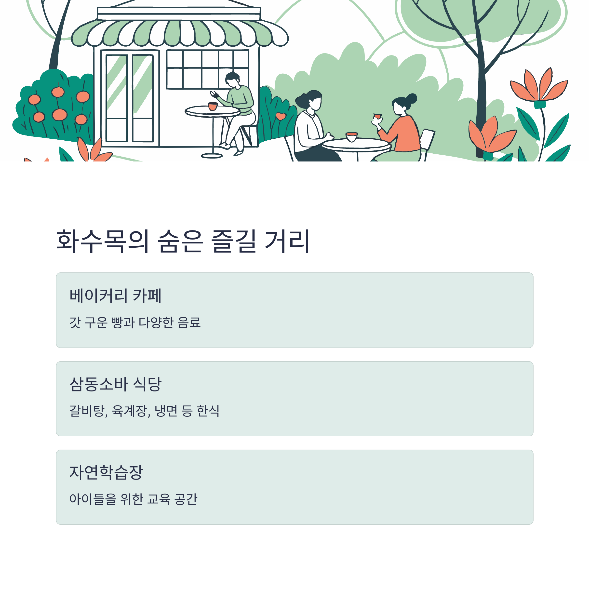 화수목 안의 숨은 즐길 거리, 어떤 게 있나요?