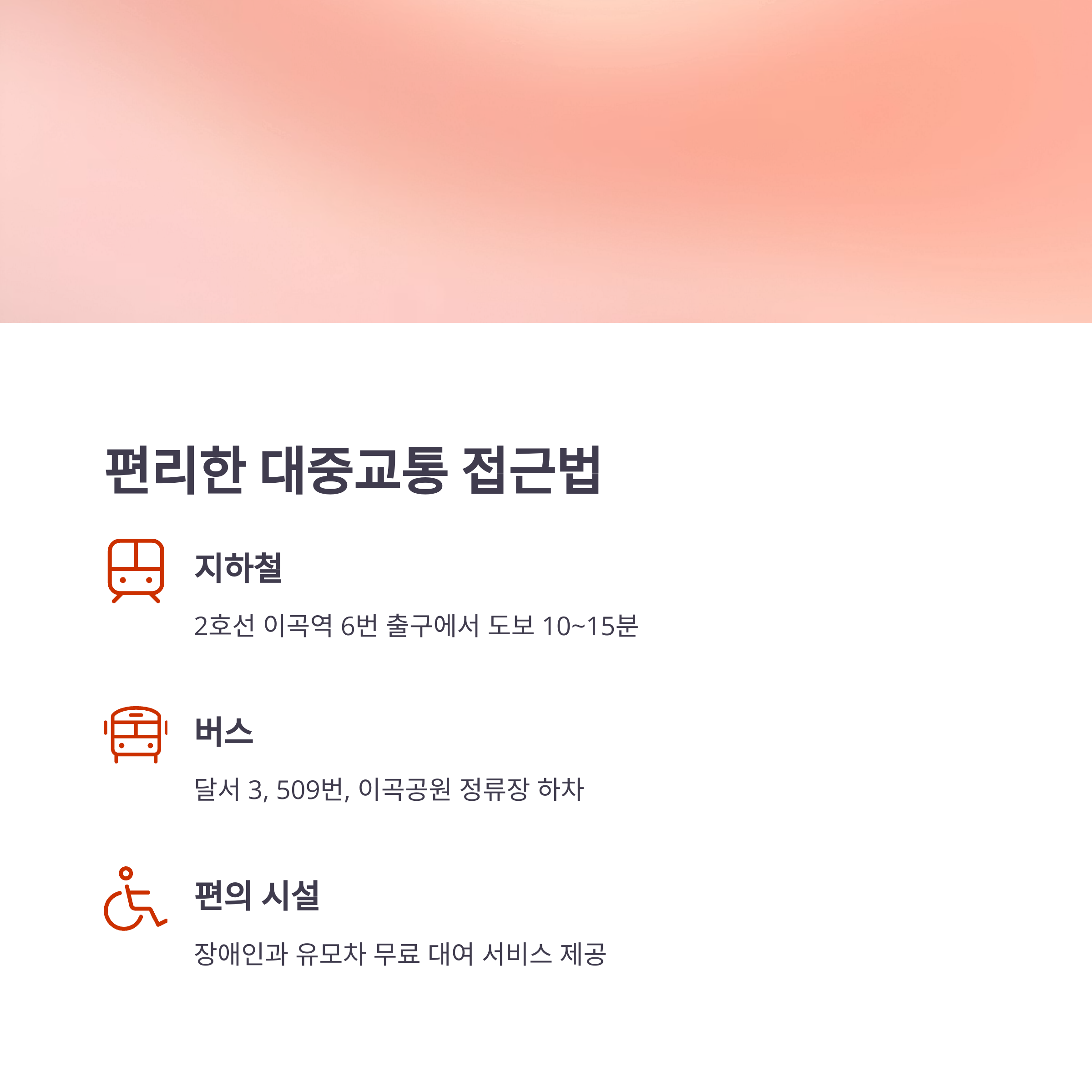 이곡장미공원은 대구 지하철 2호선 이곡역 6번 출구에서 도보 10~15분 거리에 있어