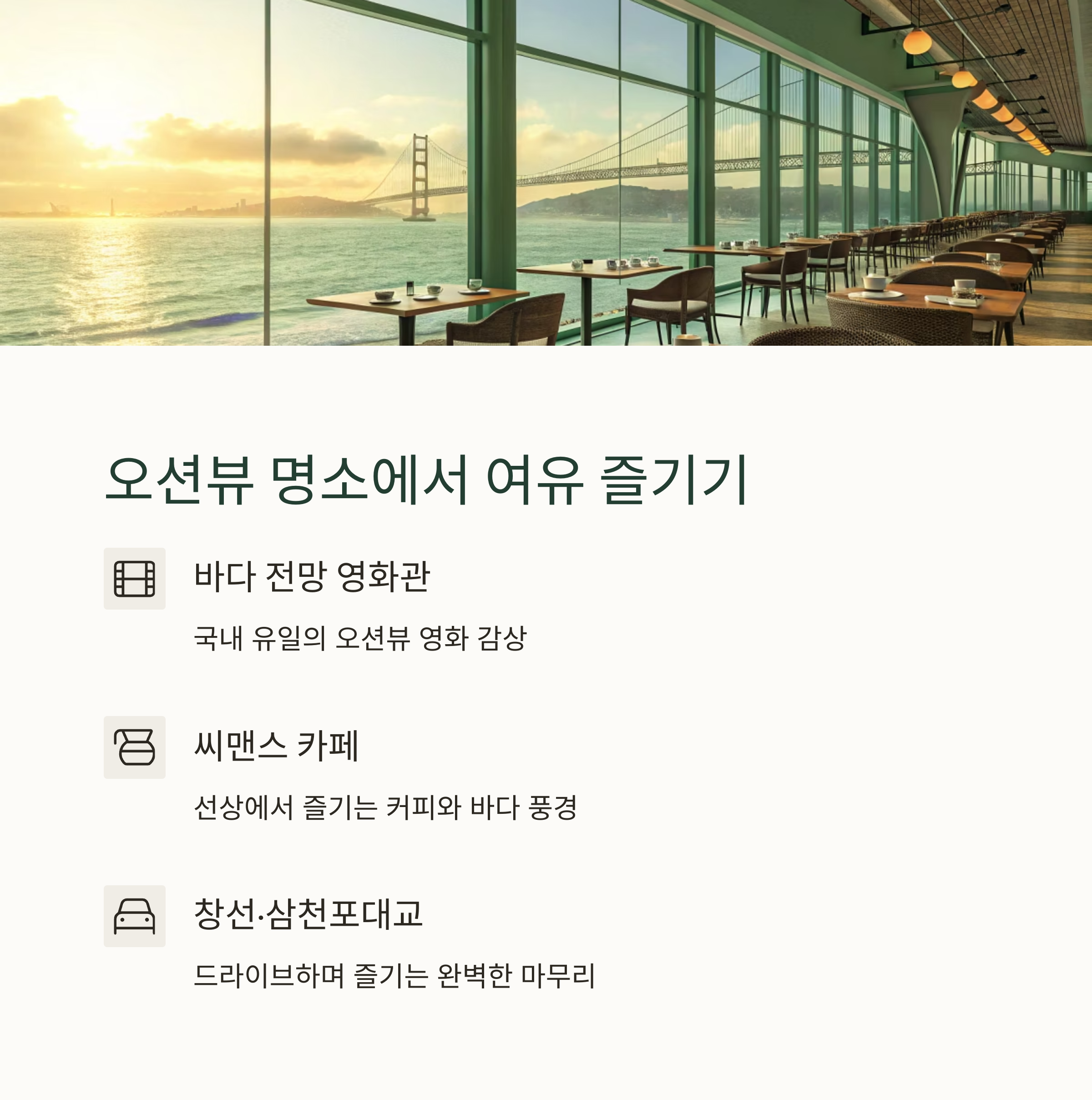 사천의 오션뷰 명소, 영화관과 카페 탐방