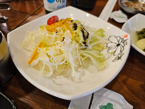 기본적인 찬이 6가지정도 나오고 계란찜과 콘치즈까지 나오더군요.