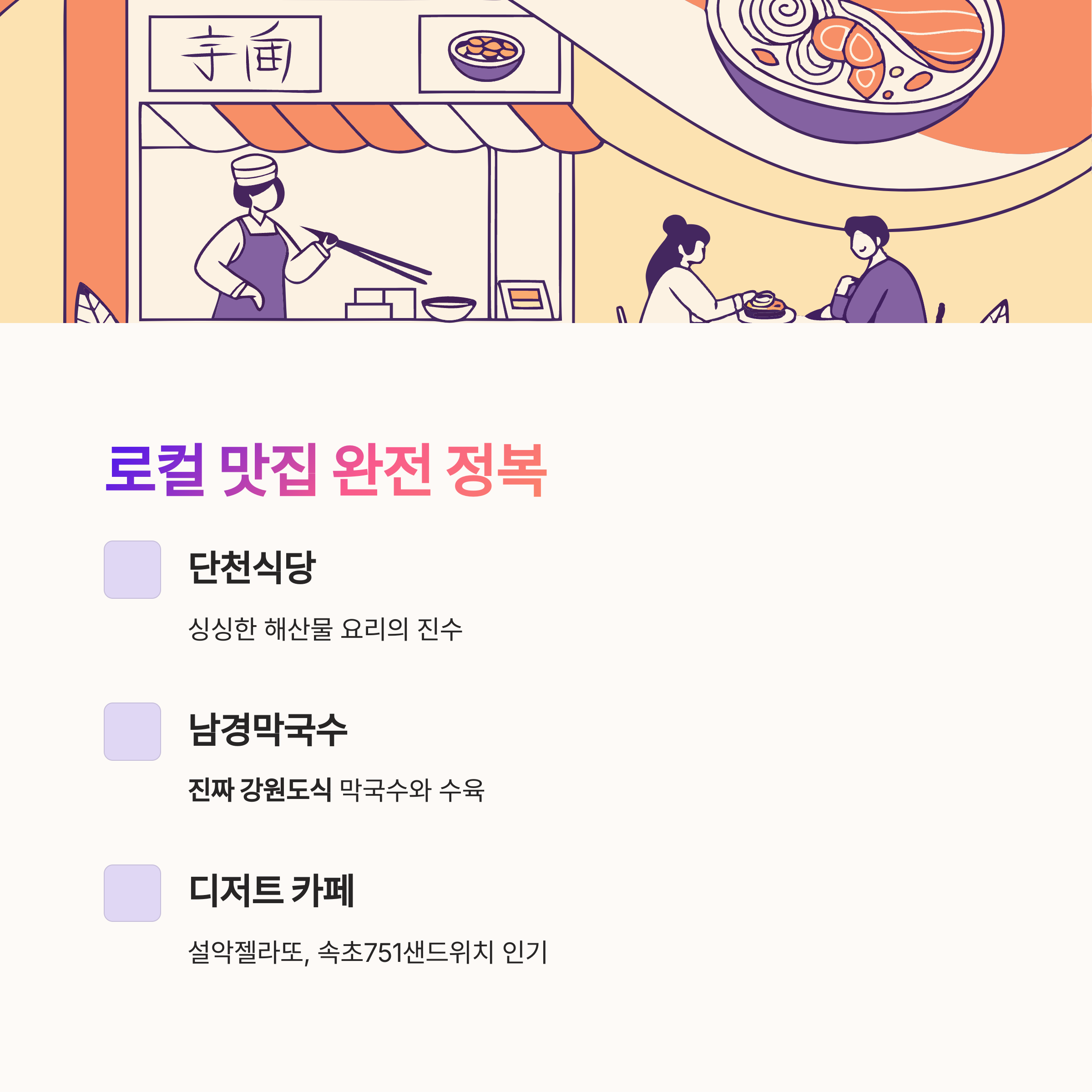 속초에 왔다면 반드시 들러야 할 로컬 맛집도 있습니다