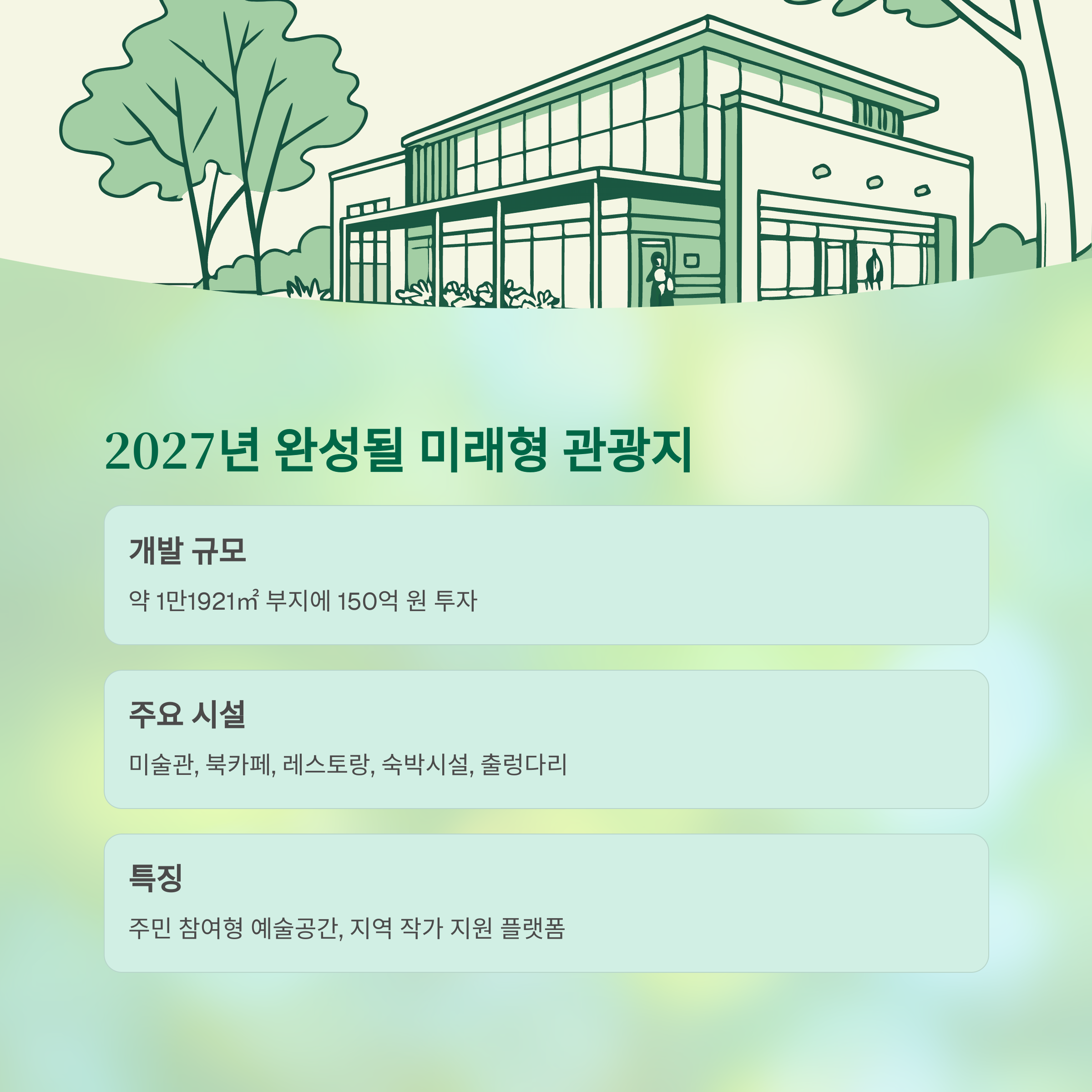 자연 속에서 문화와 예술을 함께 즐길 수 있는 프리미엄 관광지로의 성장이 기대됩니다.