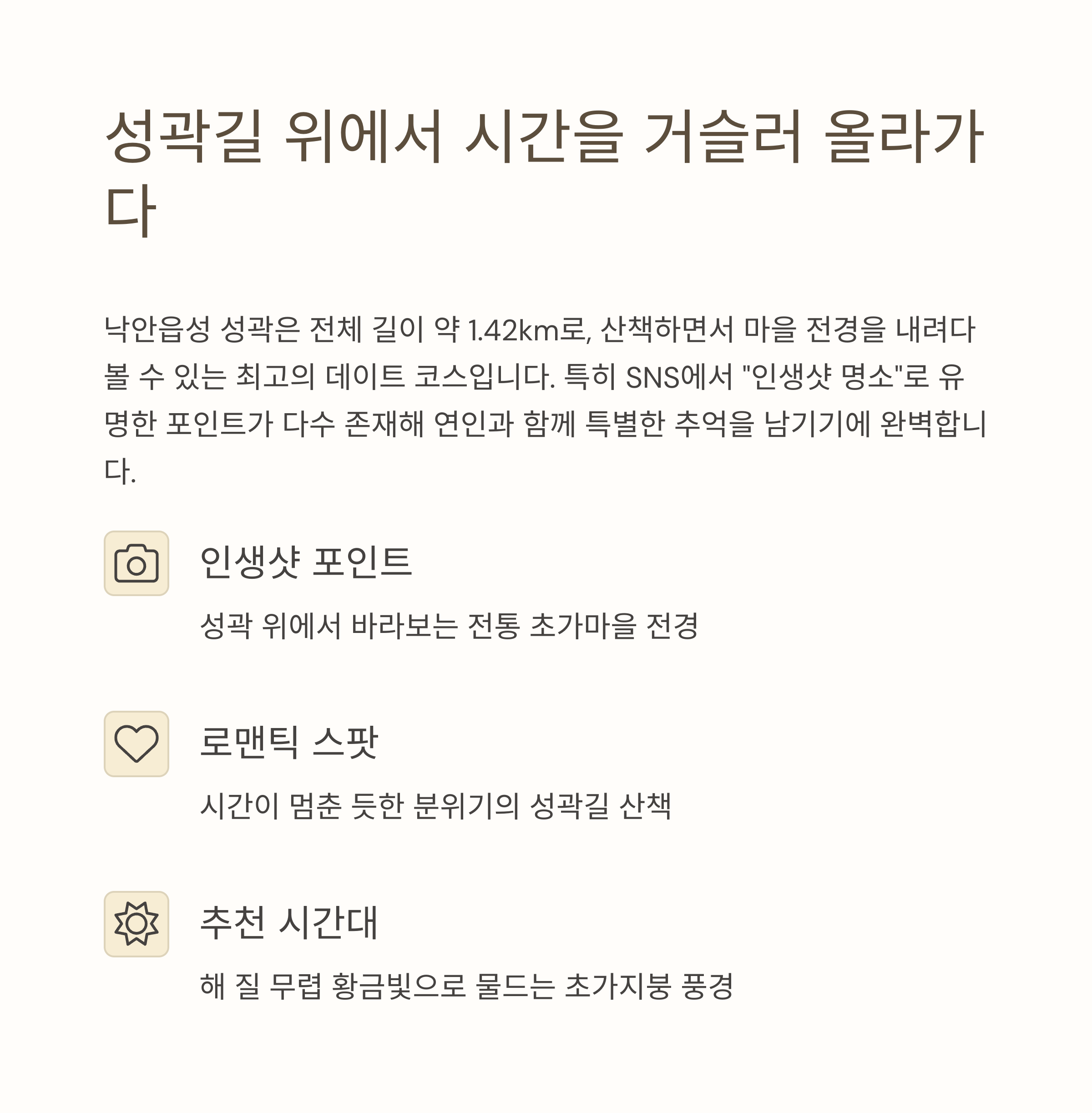 낙안읍성은 전라남도 순천의 대표 명소로, 전통과 자연을 동시에 즐길 수 있는 데이트 명소입니다