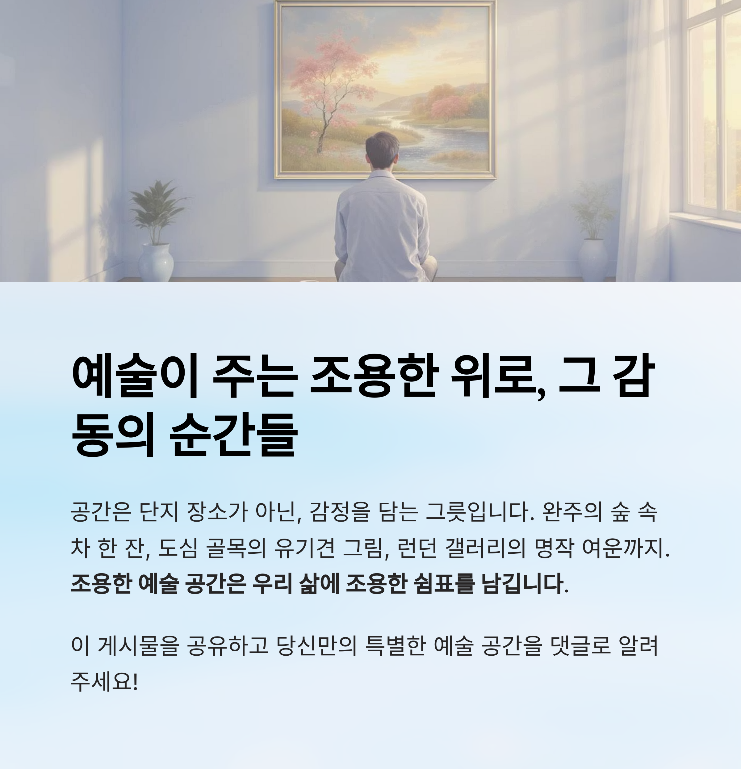 이처럼 조용한 예술 공간은 우리 삶에 조용한 쉼표를 남깁니다.