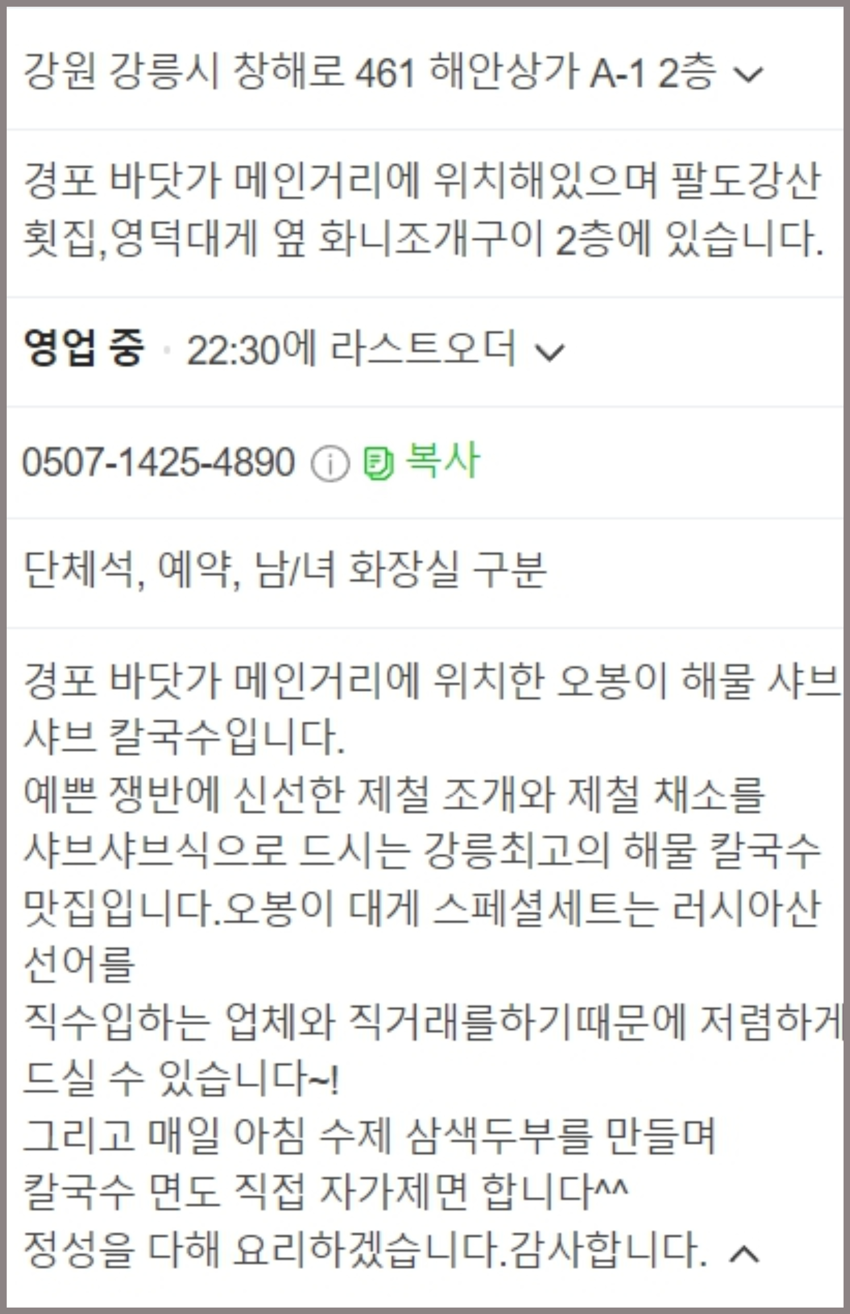 주소 / 강원 강릉시 창해로 461 해안상가 A-1 2층