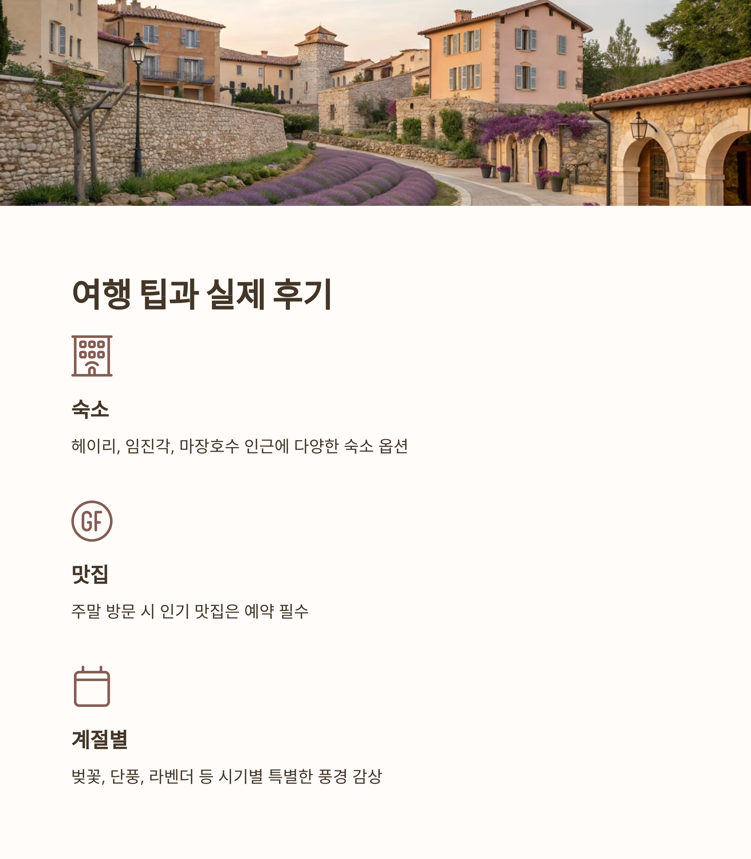 프로방스 마을 등 핵심 명소를 중심으로 여행을