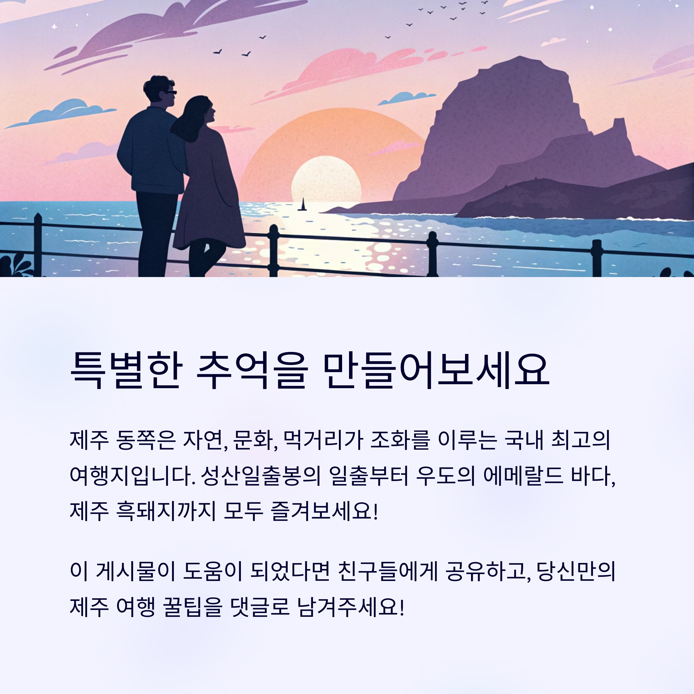 성산일출봉부터 혼인지까지, 제주 동쪽 힐링 명소와 맛집 안내