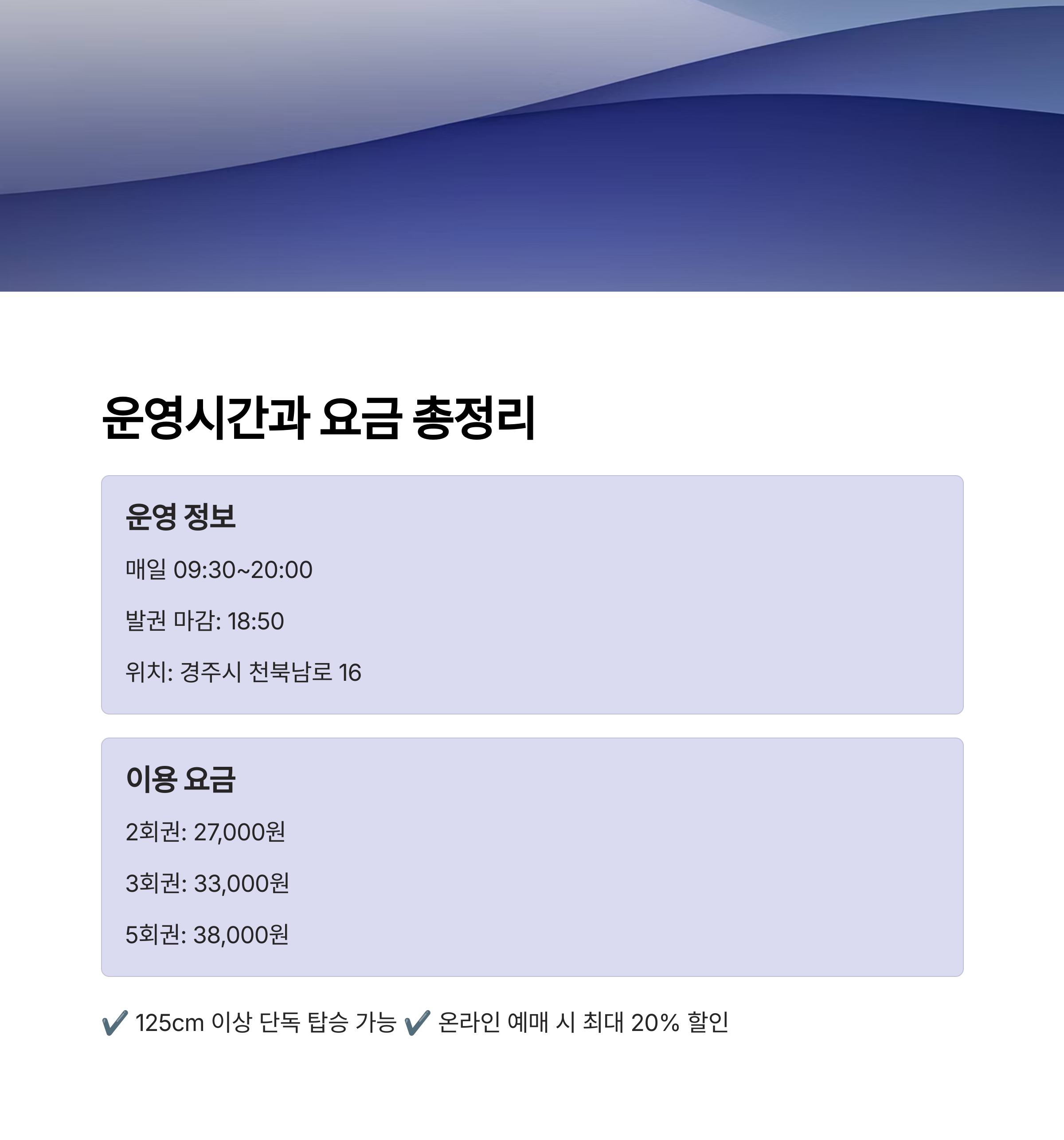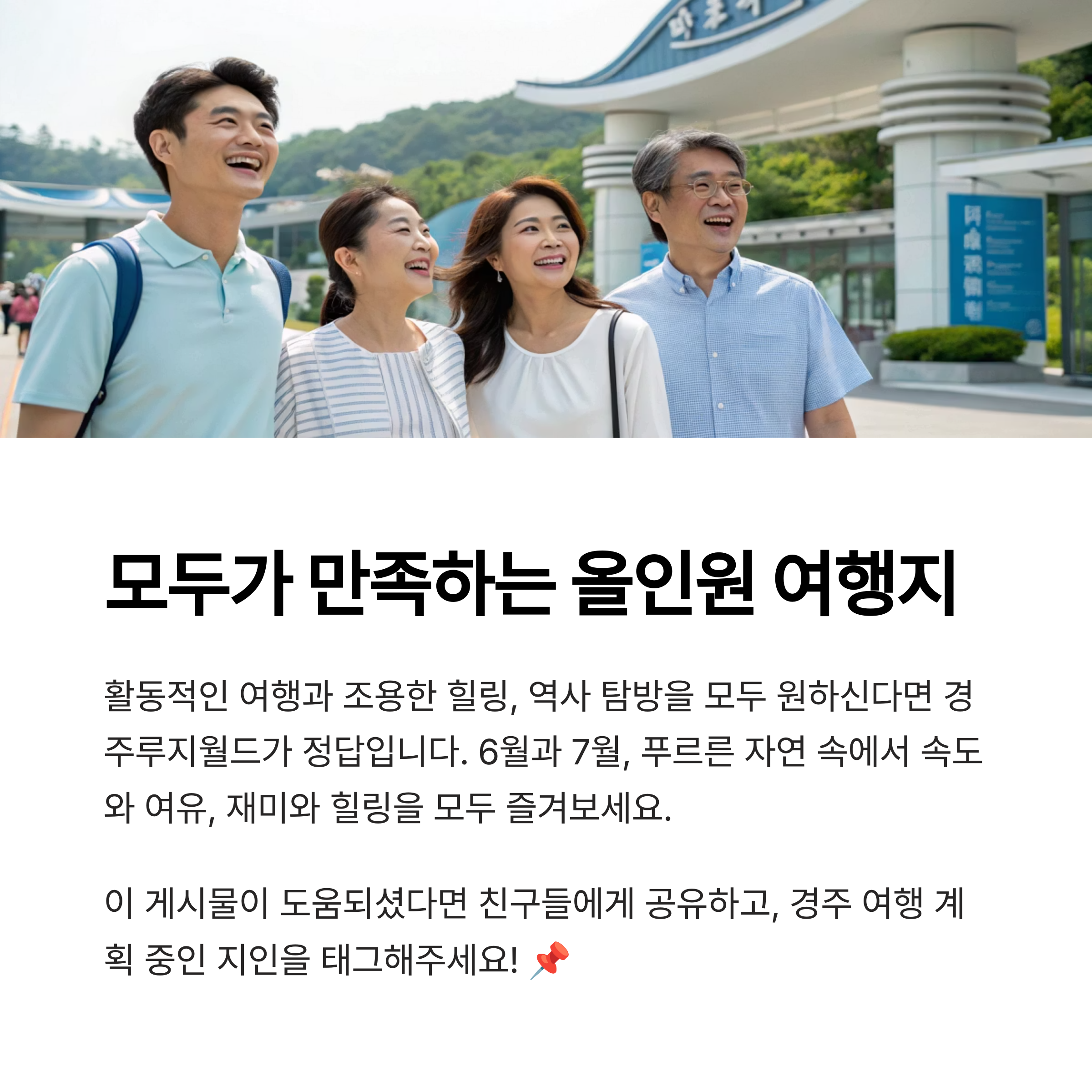- 오후: 화랑의 언덕 산책 또는 경주월드 놀이공원
