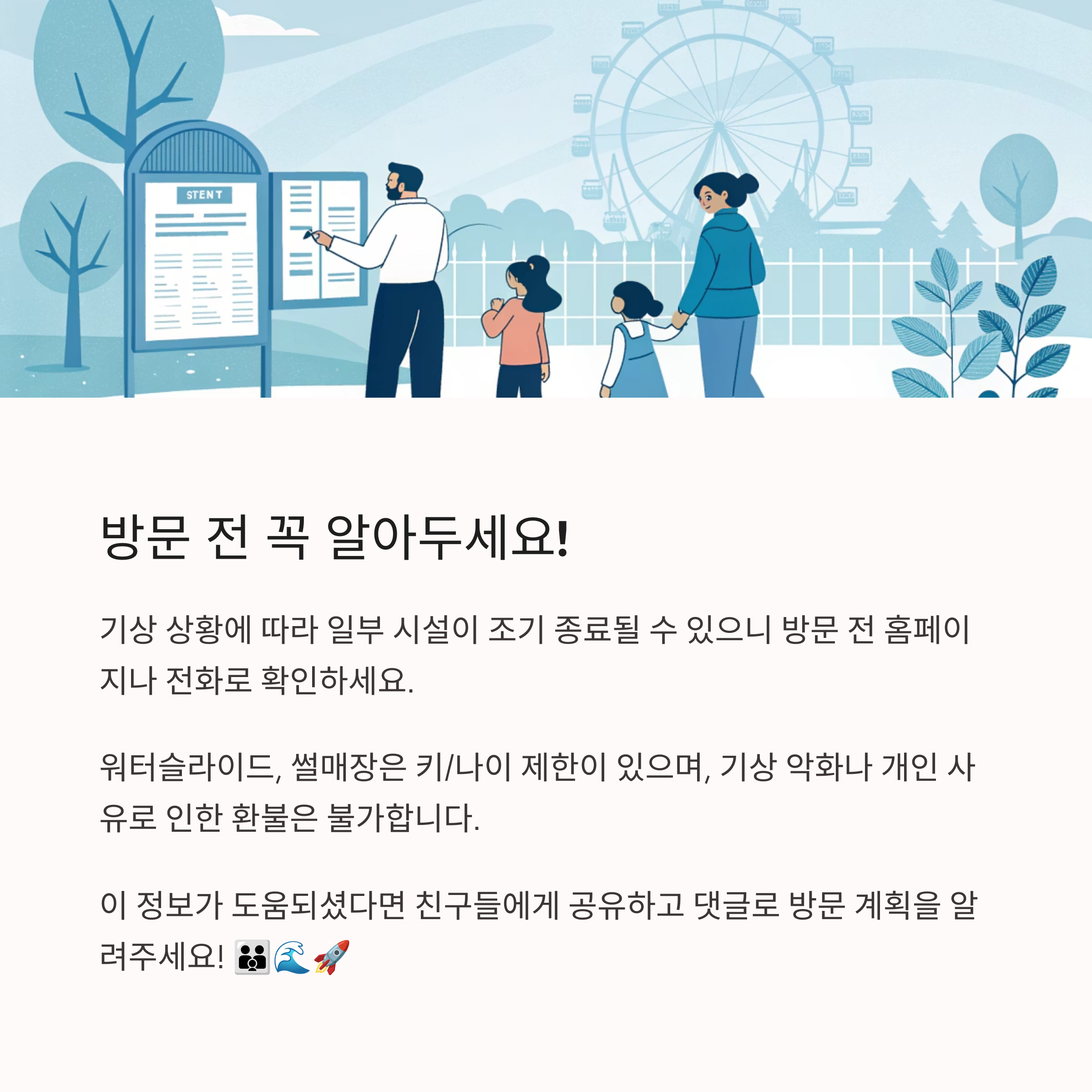 2025년 7월 2일에는 워터슬라이드와 야외 놀이기구 4종을 무료로 개방하는 이벤트가 열렸습니다.