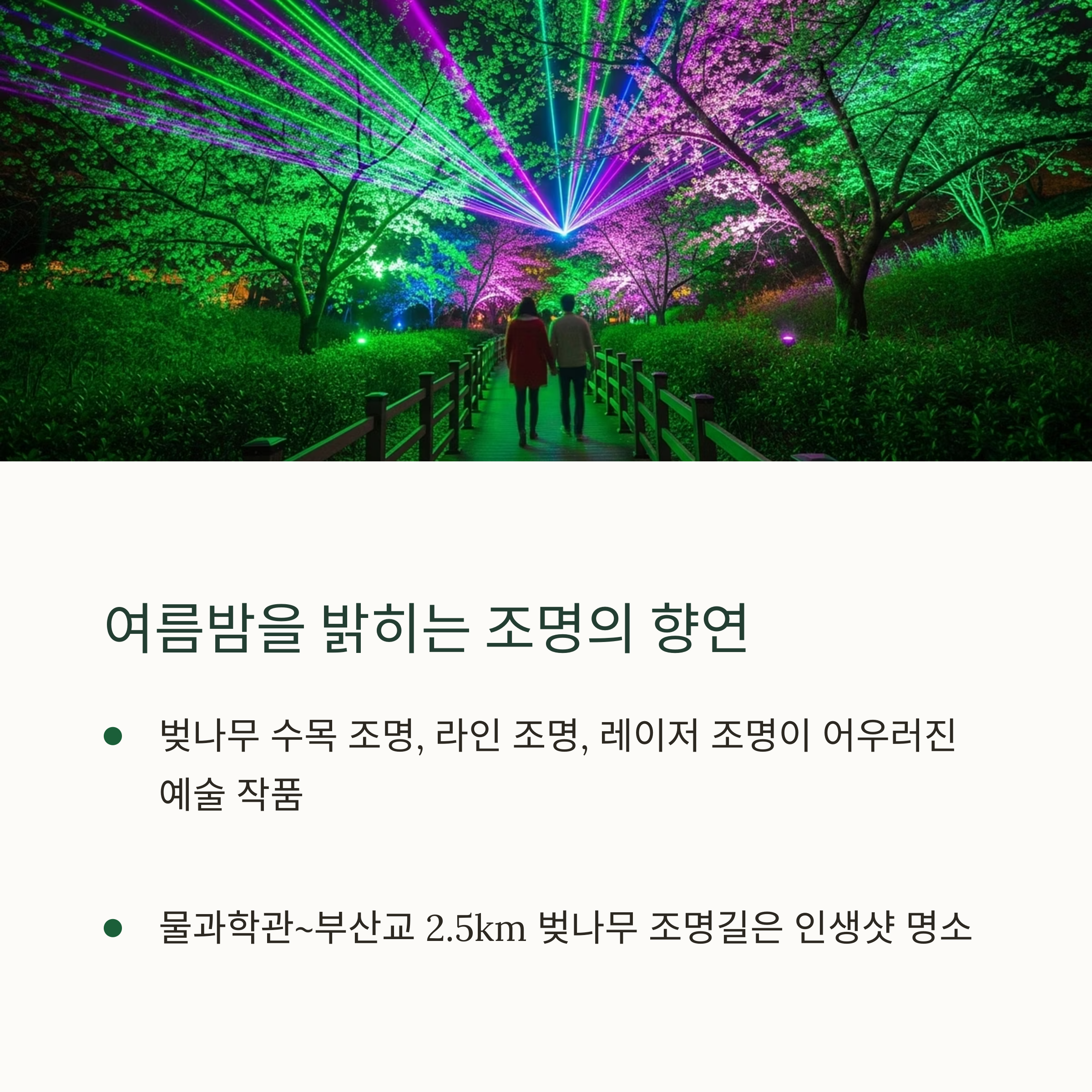특히 벚나무길 중심으로 집중 조명이 이루어져
