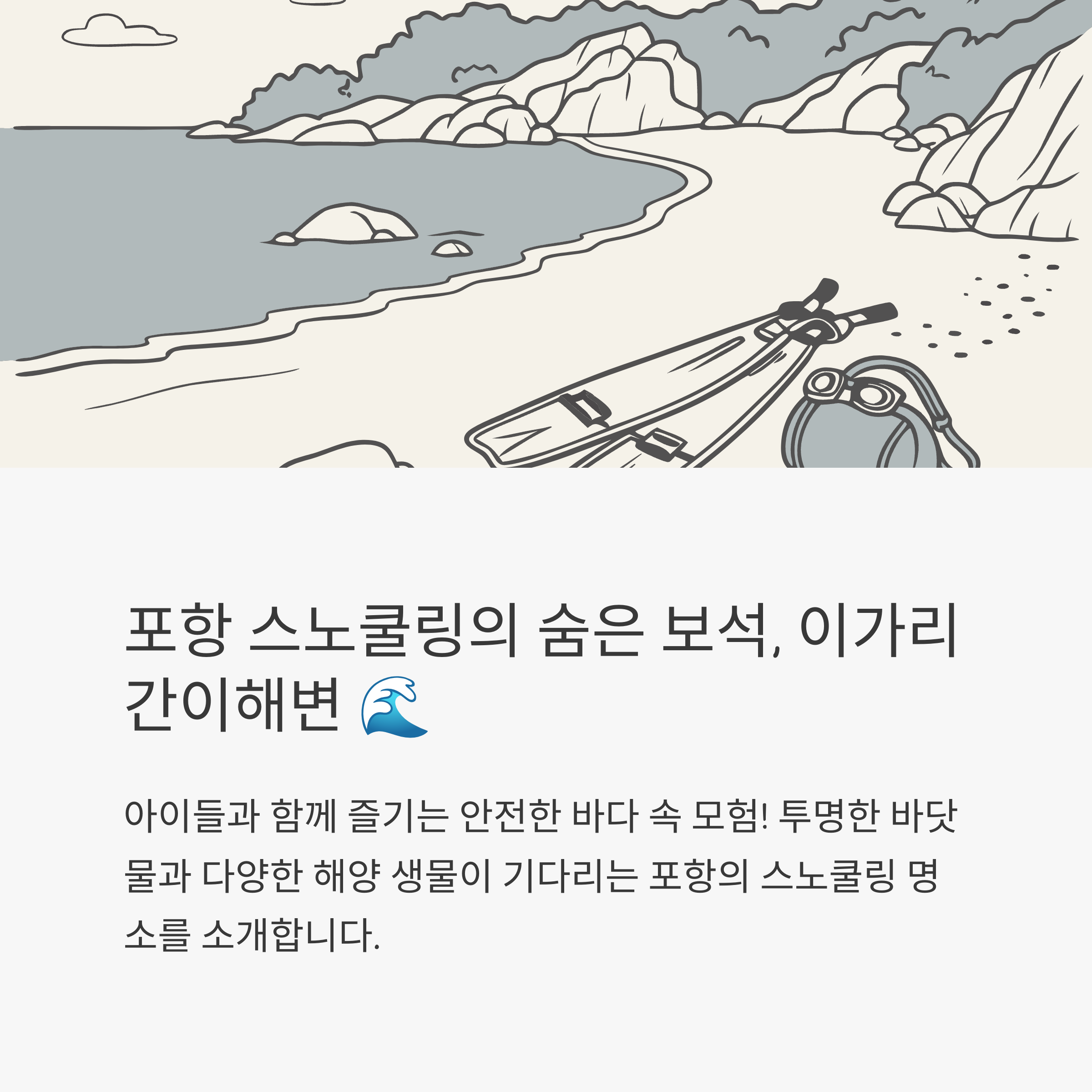포항 북구 청하면에 위치한 이가리간이해변은 최근 스노쿨링 명소로 급부상하며 여행객들의 발길이 이어지고 있습니다. 투명한 바닷물, 안전한 수심, 다양한 해양 생물 덕분에 특히 가족 단위 방문객에게 인기이며, 캠핑과 전망대 관광이 동시에 가능해 여름철 당일치기 또는 1박 2일 여행지로 강력히 추천됩니다. 이 글에서는 이가리간이해변의 매력을 비롯해 스노쿨링 팁, 주변 편의시설, 실제 후기를 바탕으로 완벽한 여행 준비 정보를 안내드립니다.