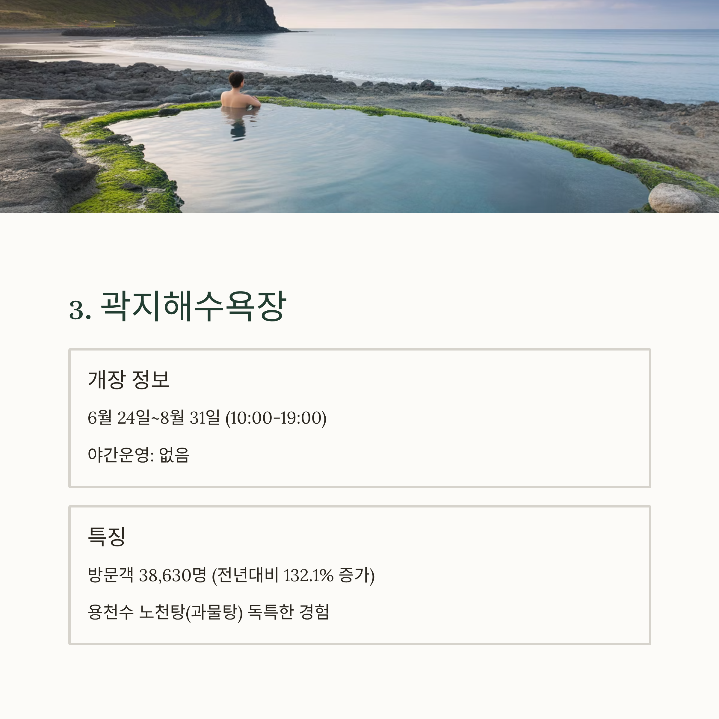 3. 곽지해수욕장 – 조용한 바다와 노천탕의 조합