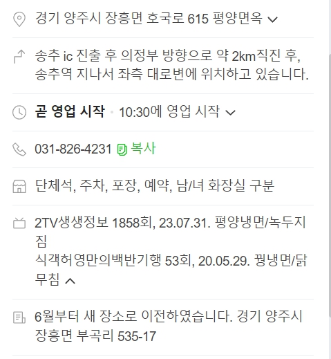 - 주소 : 경기 양주시 장흥면 호국로 615