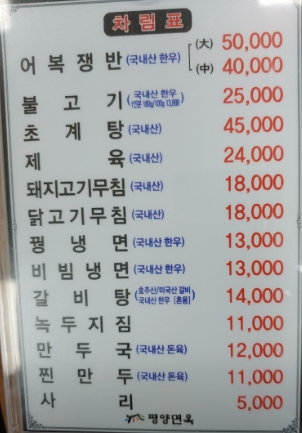 - 가격 : 평양냉면 13,000원 / 녹두지짐 11,000원