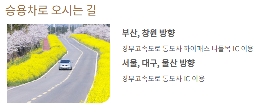 - 부산 출발: 경부고속도로 → 통도사IC → 약 10분 이동