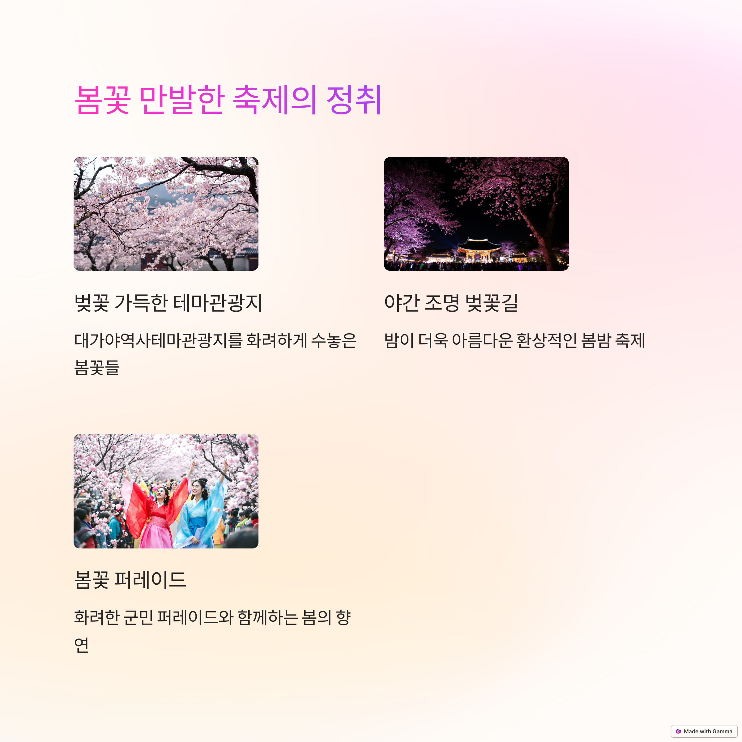 | 축제 일정 | 2025년 3월 28일부터 30일까지 3일간 개최 |