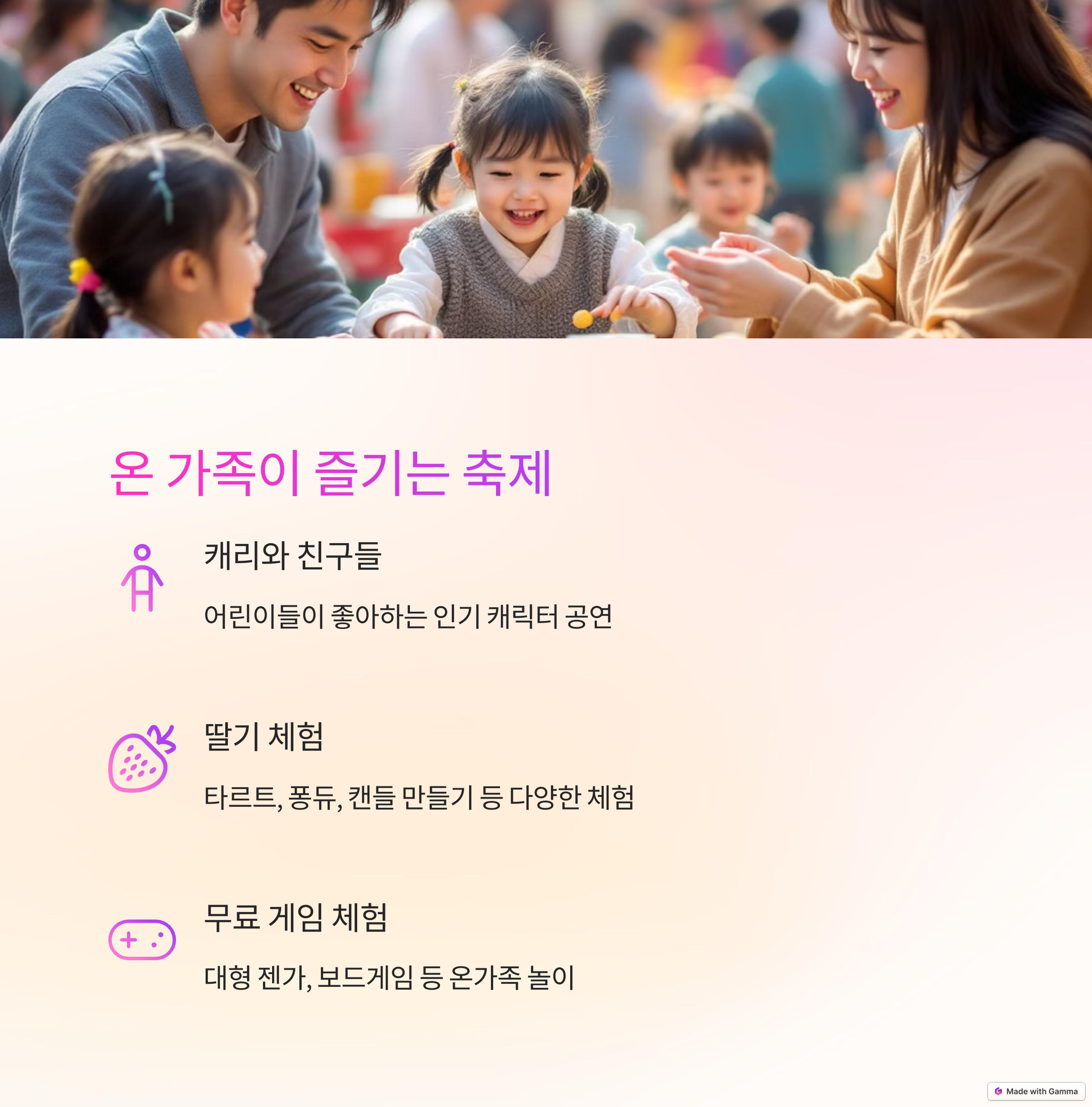 이번 축제는 역사적 가치와 가족친화적인 프로그램을 동시에 체험할 수 있는 드문 기회를 제공합니다. 미로탈출게임, 대가야 발굴탐험대 같은 교육적 요소가 담긴 체험과 유홍준 교수, 최태성 강사의 토크콘서트 등 지적 자극을 받을 수 있는 콘텐츠가 조화를 이루고 있습니다. 또한 핑크월드 포토존, 딸기 타르트 만들기 같은 어린이와 가족을 위한 콘텐츠까지 다양하게 마련되어, 남녀노소 누구나 만족할 수 있는 축제로 구성되었습니다. 관람객을 고려한 세심한 기획력이 돋보이는 부분입니다.