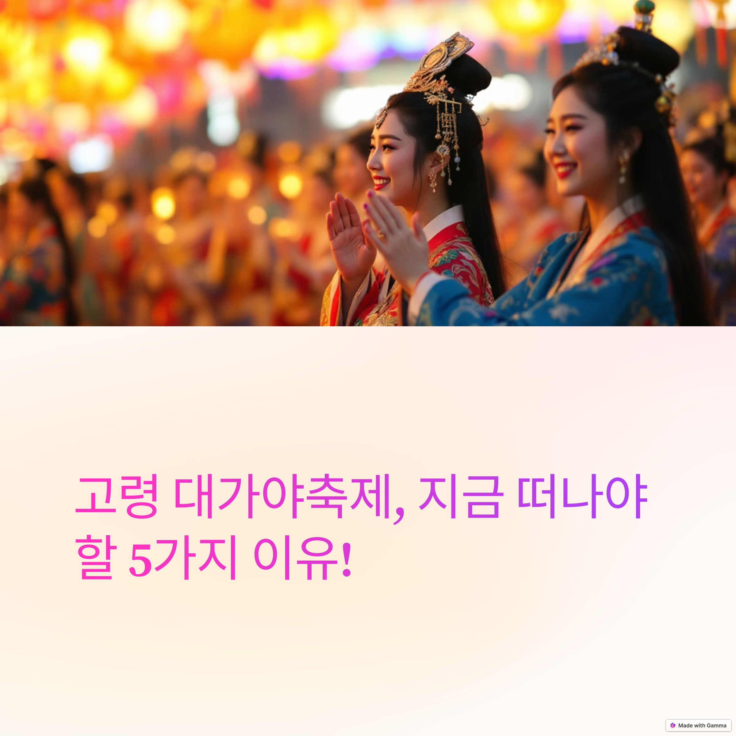 여러분은 고령 대가야축제의 어떤 부분이 가장 기대되시나요? 축제에 대한 소감이나 궁금한 점이 있다면 댓글로 공유해 주세요. 함께 이야기 나누며 더 풍성한 콘텐츠를 만들어가고 싶습니다!