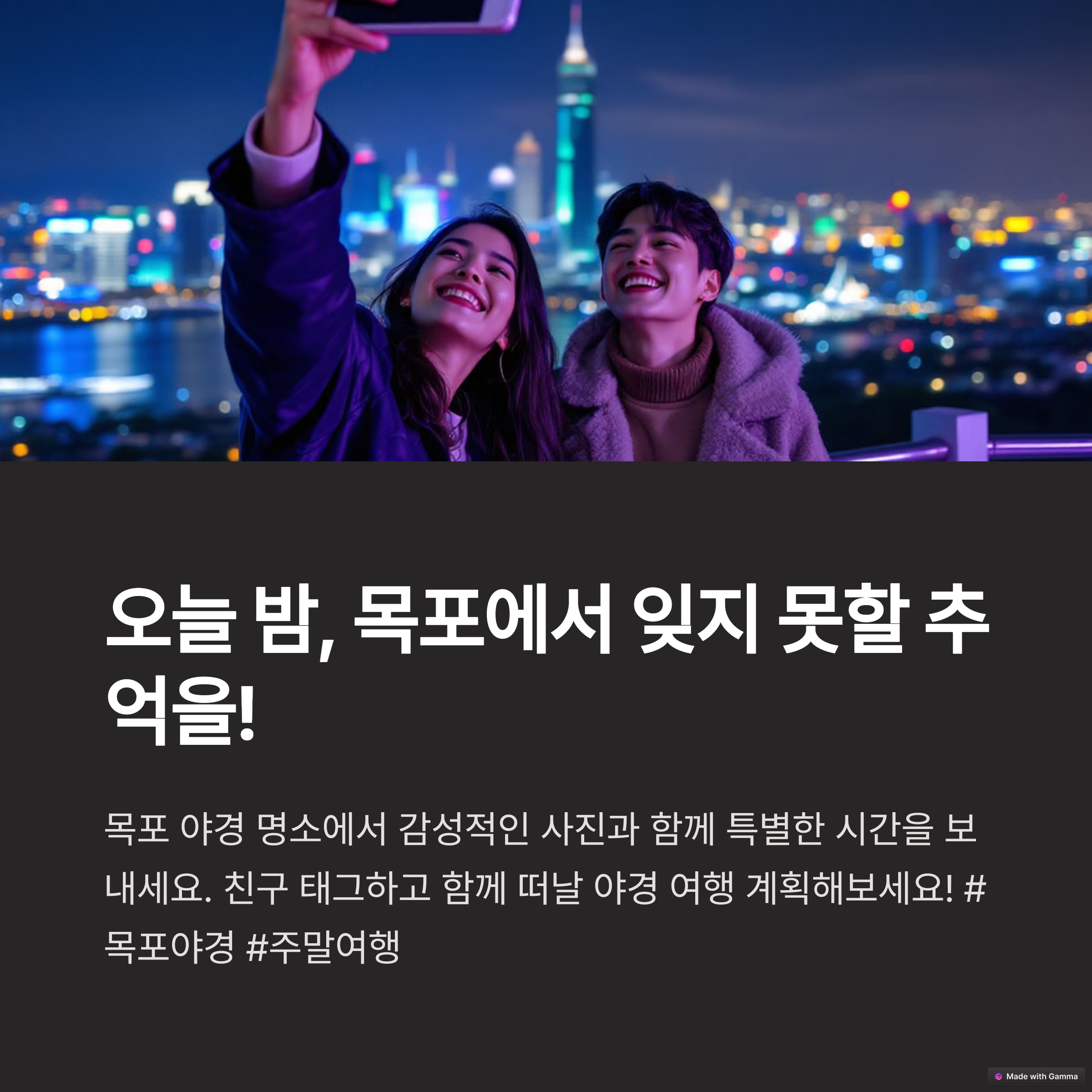 목포는 밤이 되면 낮과는 전혀 다른 분위기를 자아내는 도시입니다. 바다와 산, 도시의 불빛이 어우러져 독특한 야경을 만들어내며, 그중에서도 SNS에서 자주 등장하는 명소들이 더욱 눈길을 끌고 있습니다. 감성을 자극하는 조명과 함께 한 컷의 사진으로 추억을 남기기 좋은 장소들이 가득하죠. 특히 최근에는 인스타그램이나 유튜브 등을 통해 소개되며 더욱 인기를 끌고 있는 명소들이 많아졌습니다. 이제는 단순히 관광을 넘어서, '사진을 찍기 위해' 찾는 사람들이 늘어났습니다. 그런 트렌드에 맞춰 오늘 소개할 야경 명소 3곳은 모두 그런 감성을 충족시켜 줄 수 있는 곳입니다.