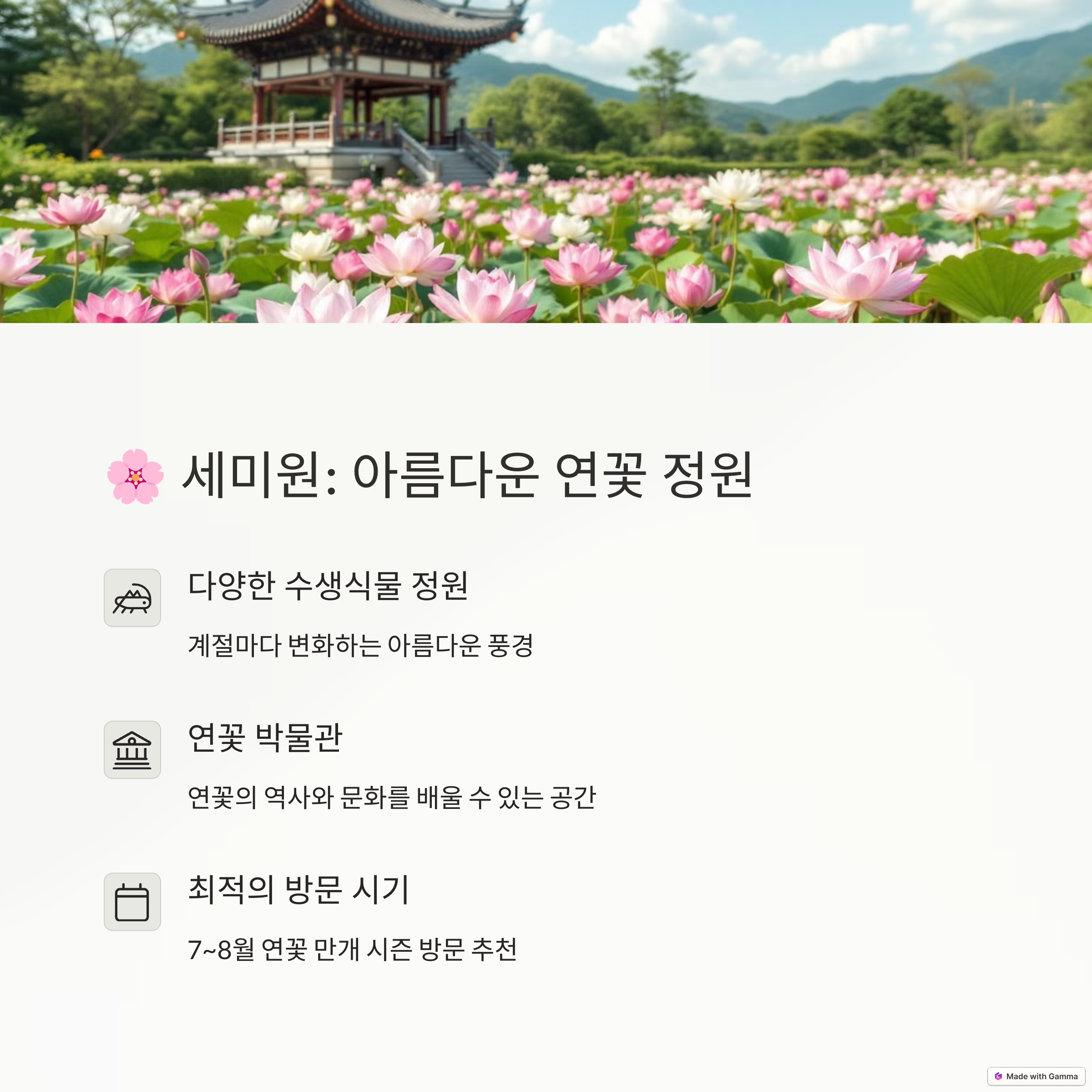 | 위치 및 거리 | 서울에서 차로 약 1시간 거리의 접근성 높은 여행지 |