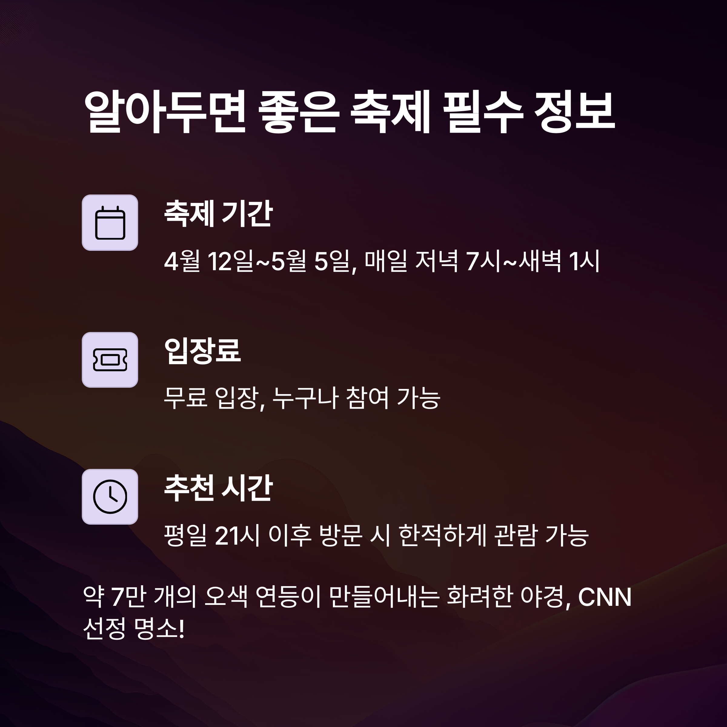 | 축제 일정 | 2025년 4월 12일 ~ 5월 5일, 점등식은 4월 12일 19시 |