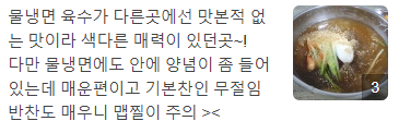 바로 새콤달콤한 맛의 냉면 육수랍니다.