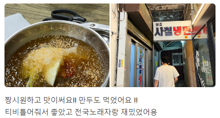 성동구 원조사철냉면 은둔식달 생활의달인 한양시장 50년 냉면