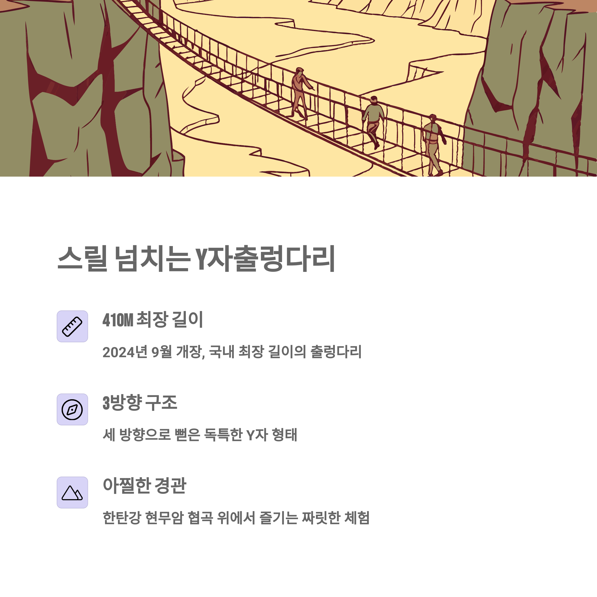 | Y자출렁다리 | 비둘기낭폭포 | 연계 체험 |