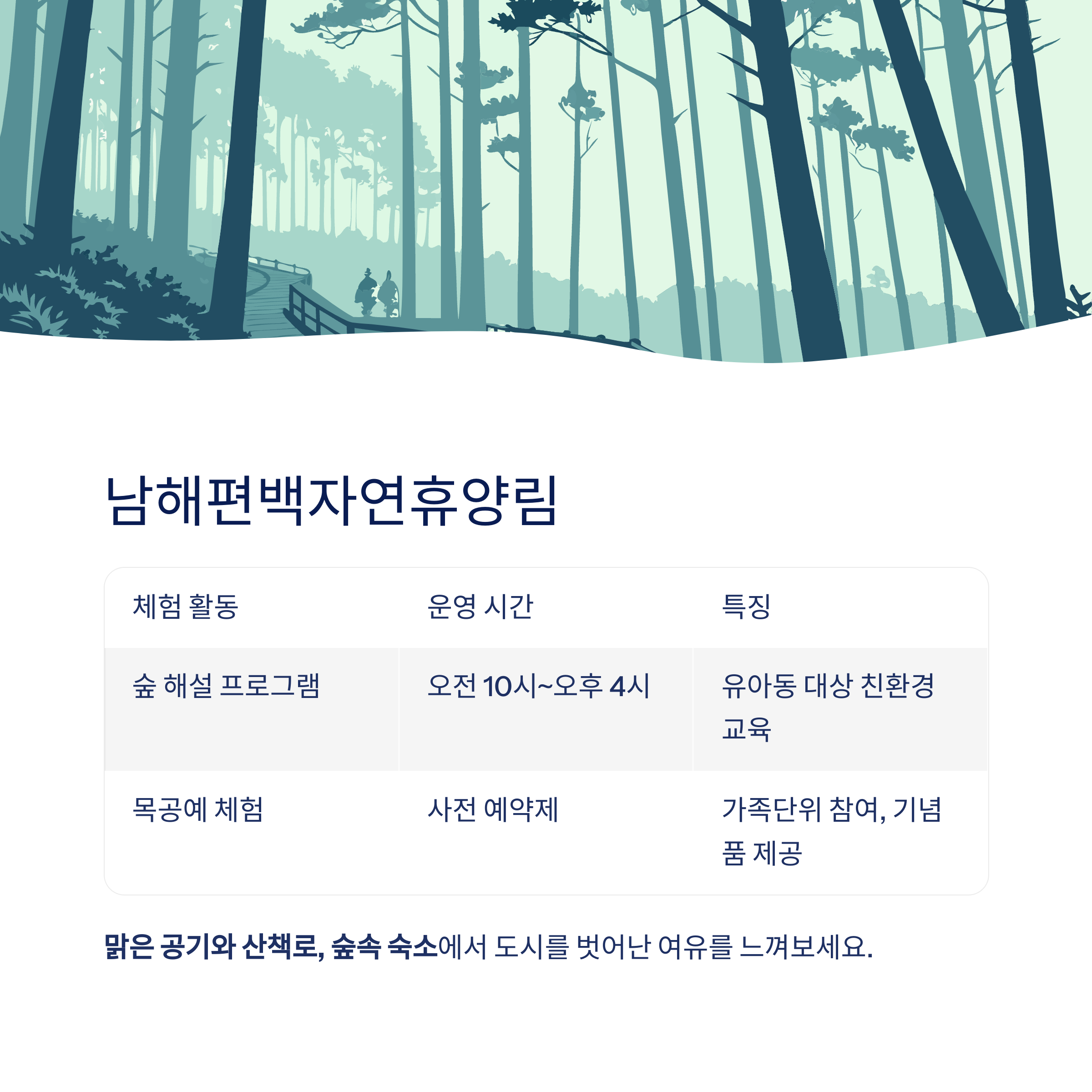 4. 남해편백자연휴양림 – 자연 속 힐링 가족 체험장