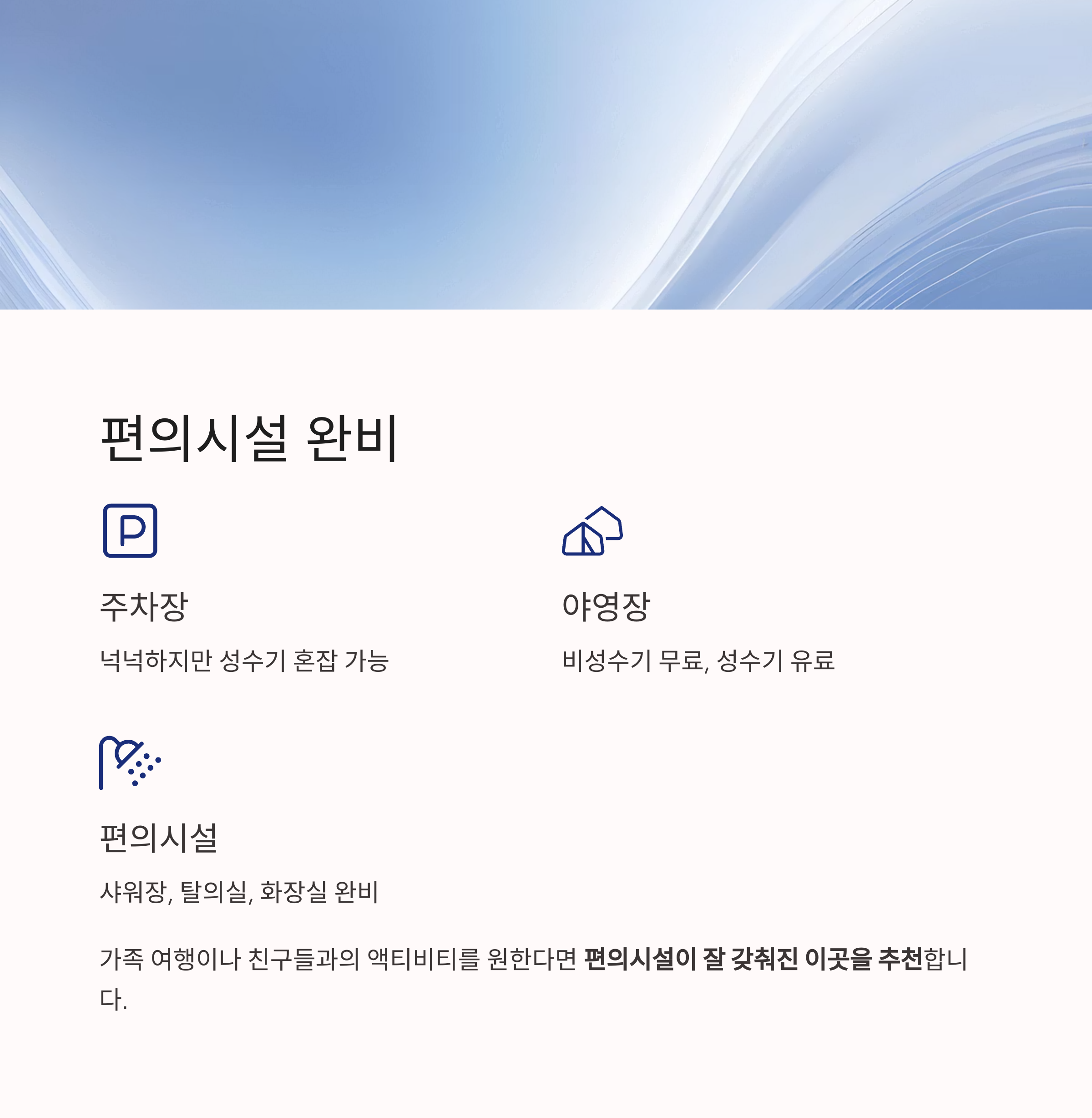 | 주차장 | 넉넉하지만 성수기 혼잡 가능 |
