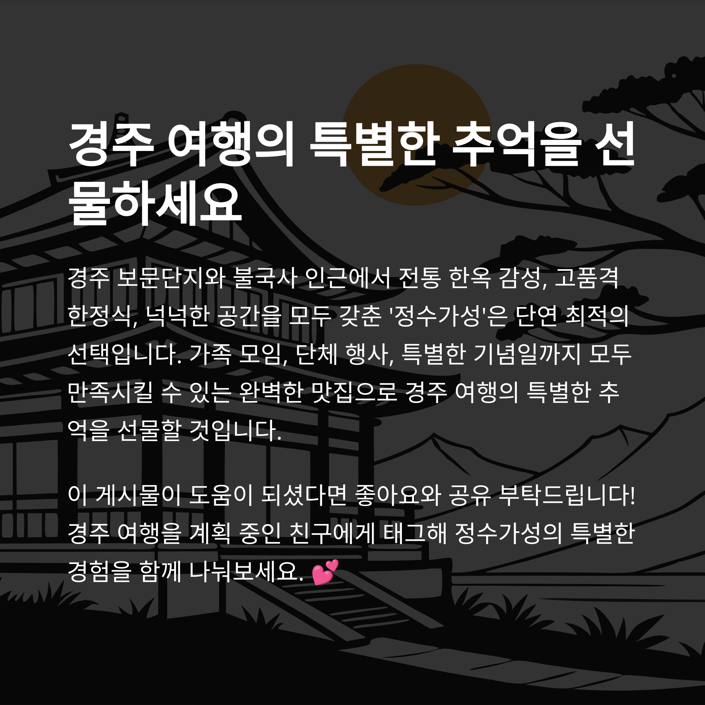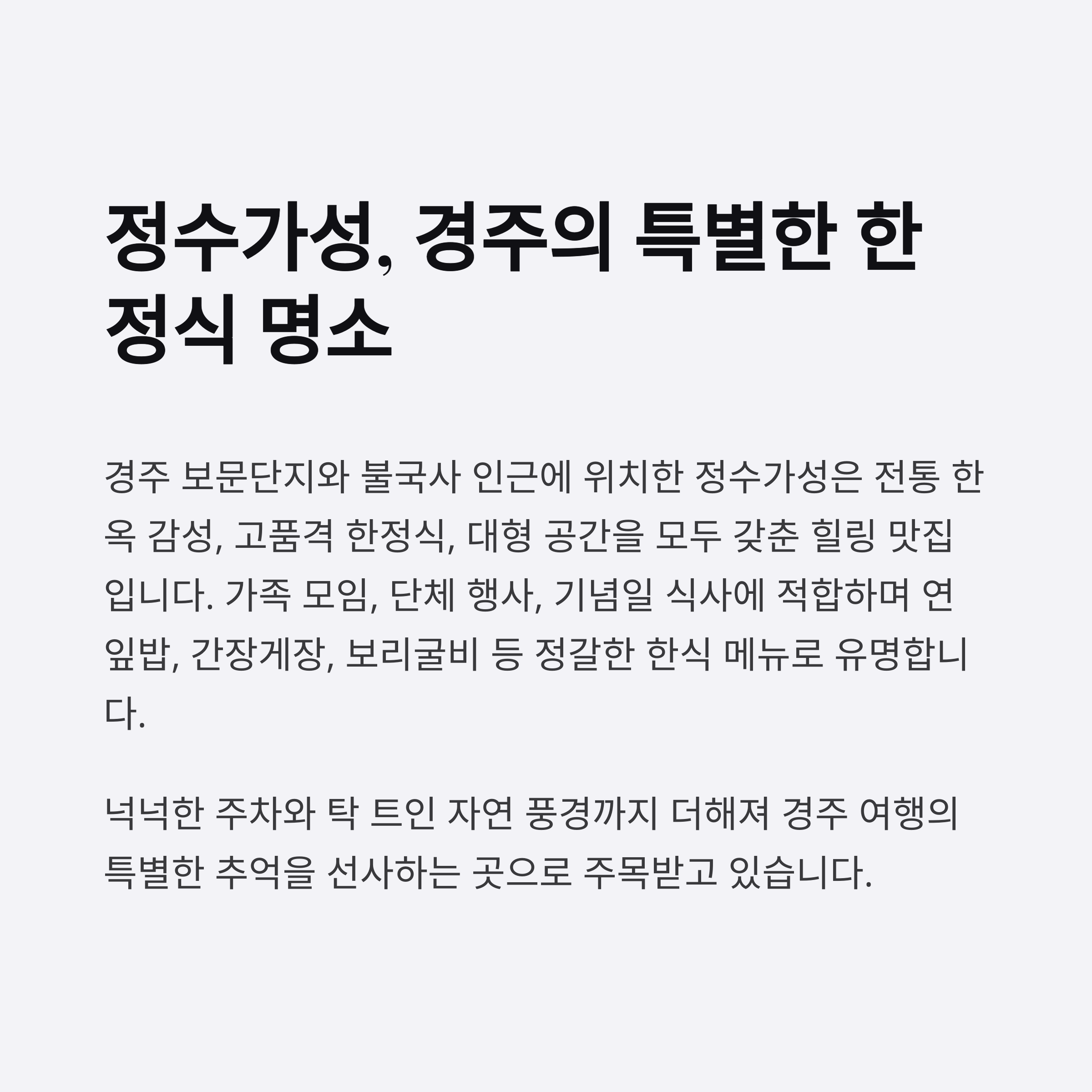 경주 불국사 근처 한옥 힐링 한정식 맛집, 정수가성 완벽 가이드
