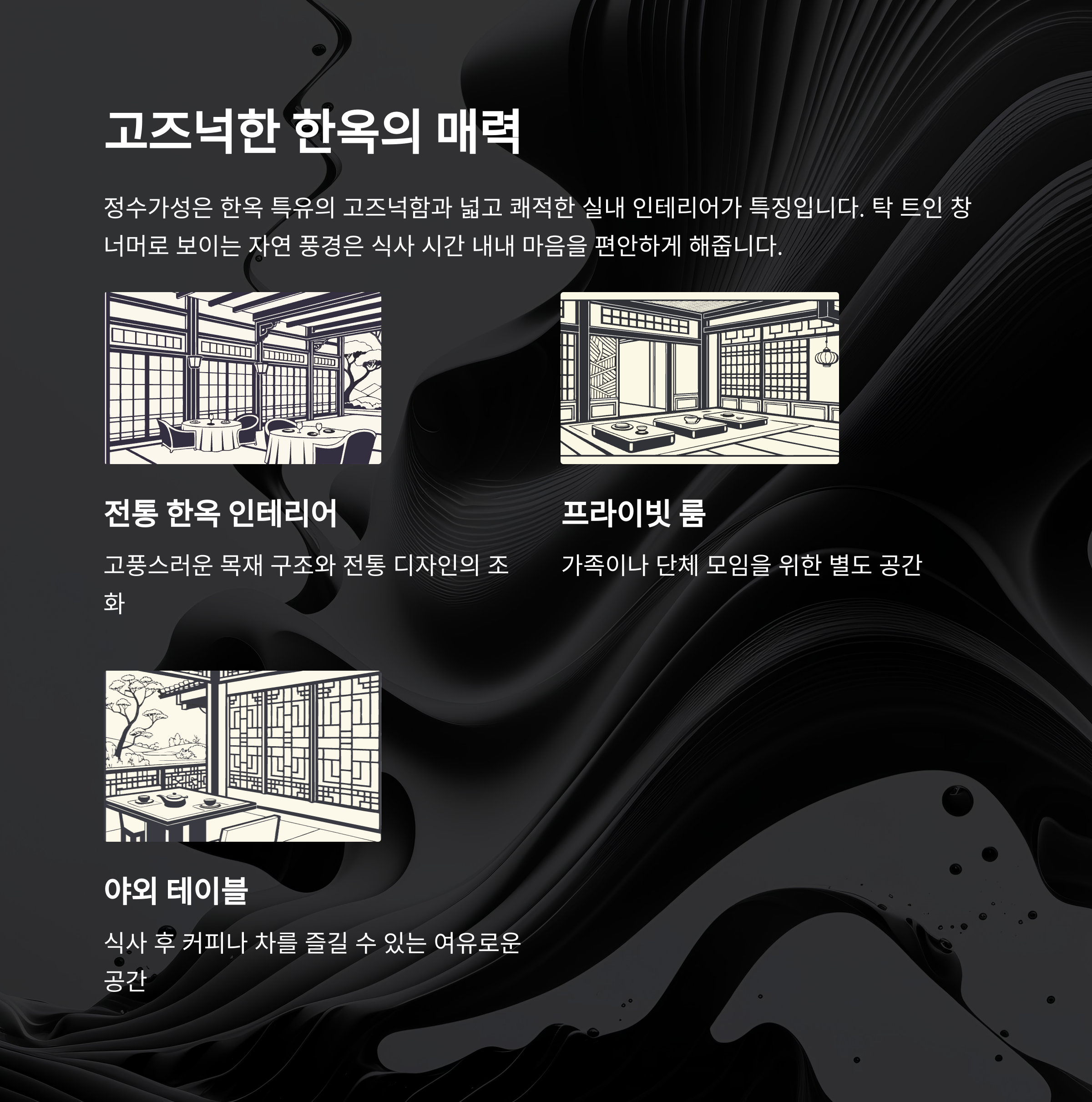 전통 한옥 감성, 고품격 한정식, 넉넉한 공간을 모두 갖춘