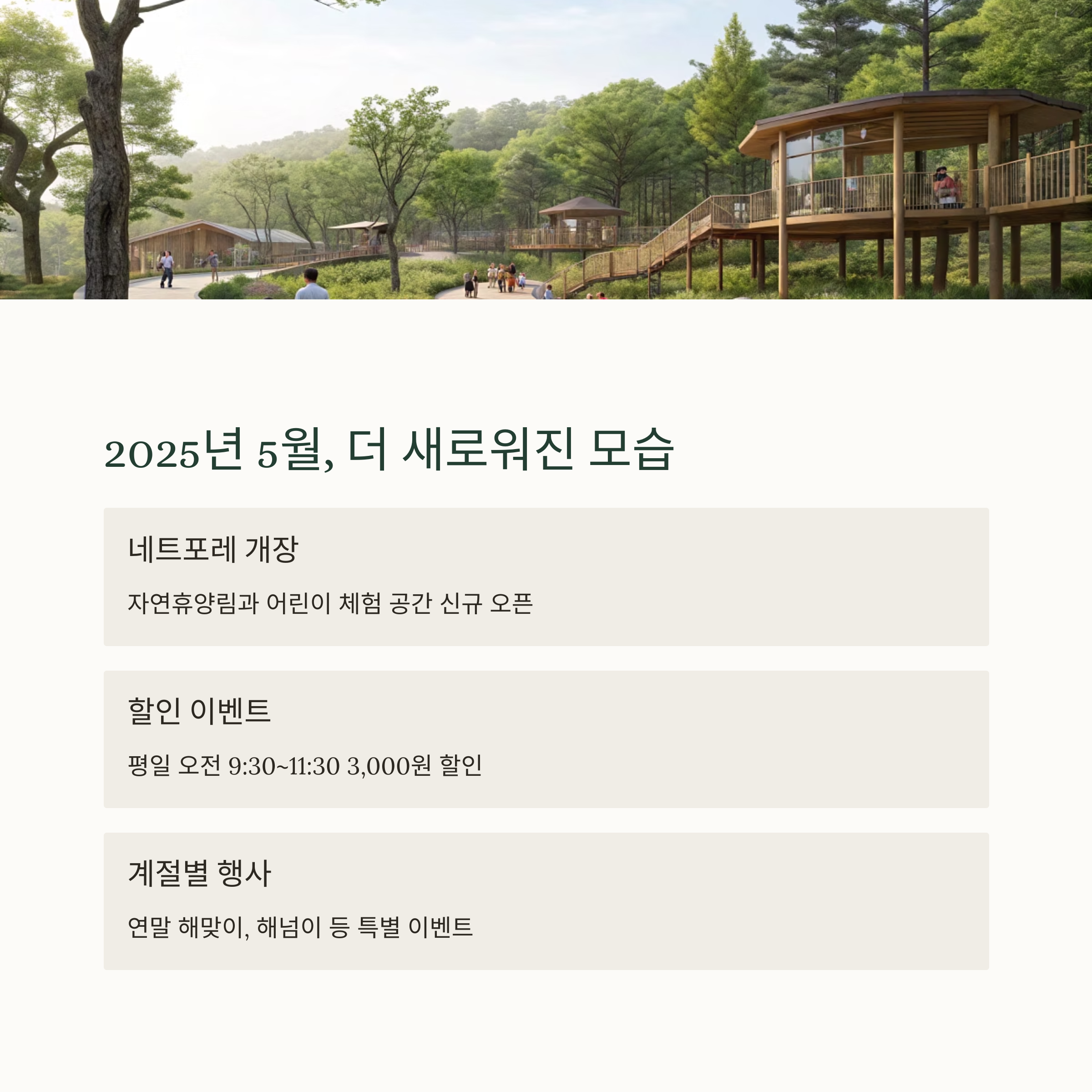 2025년 5월, 네트포레 자연휴양림까지 정식 개장하며