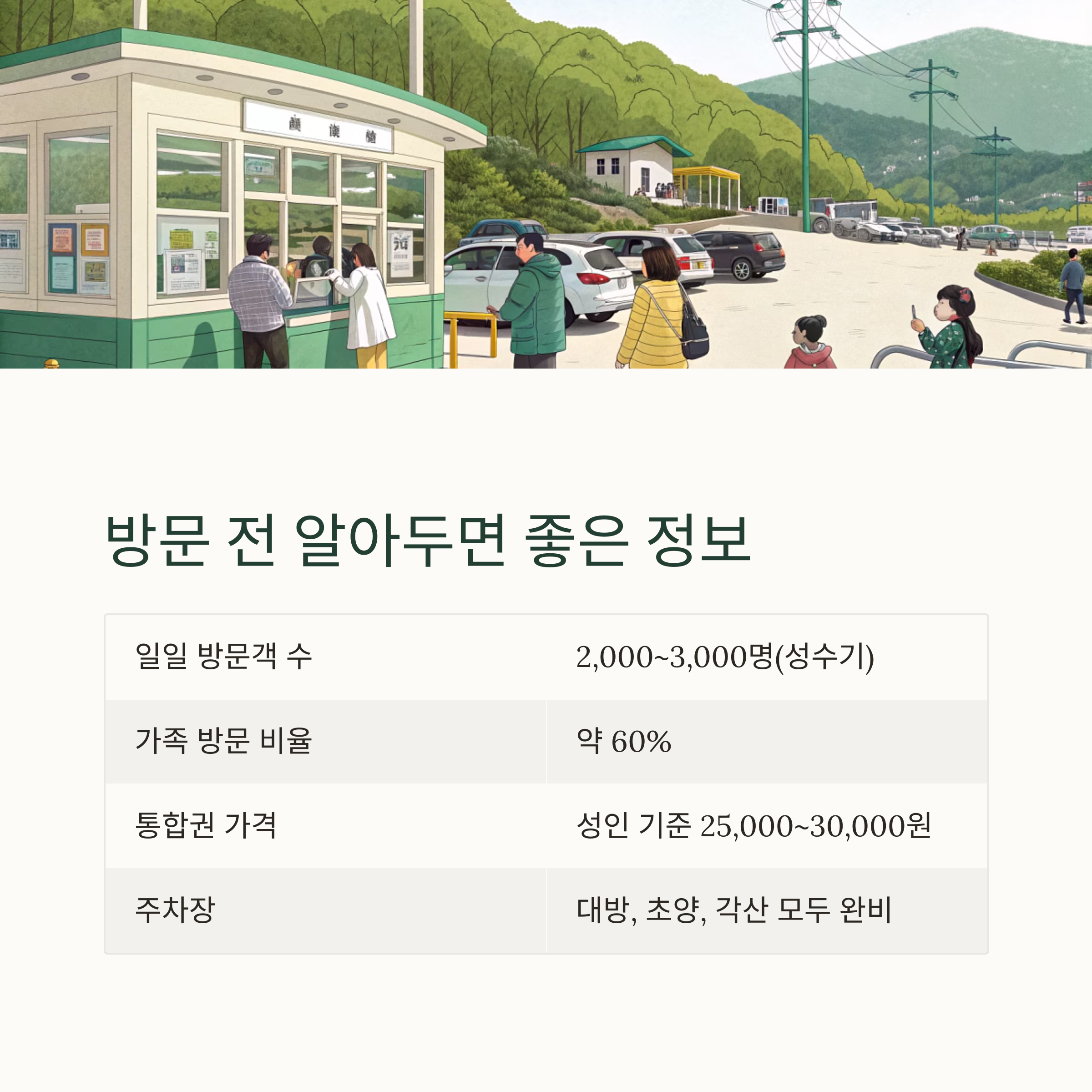 | 일일 방문객 수 | 2,000~3,000명(성수기) |