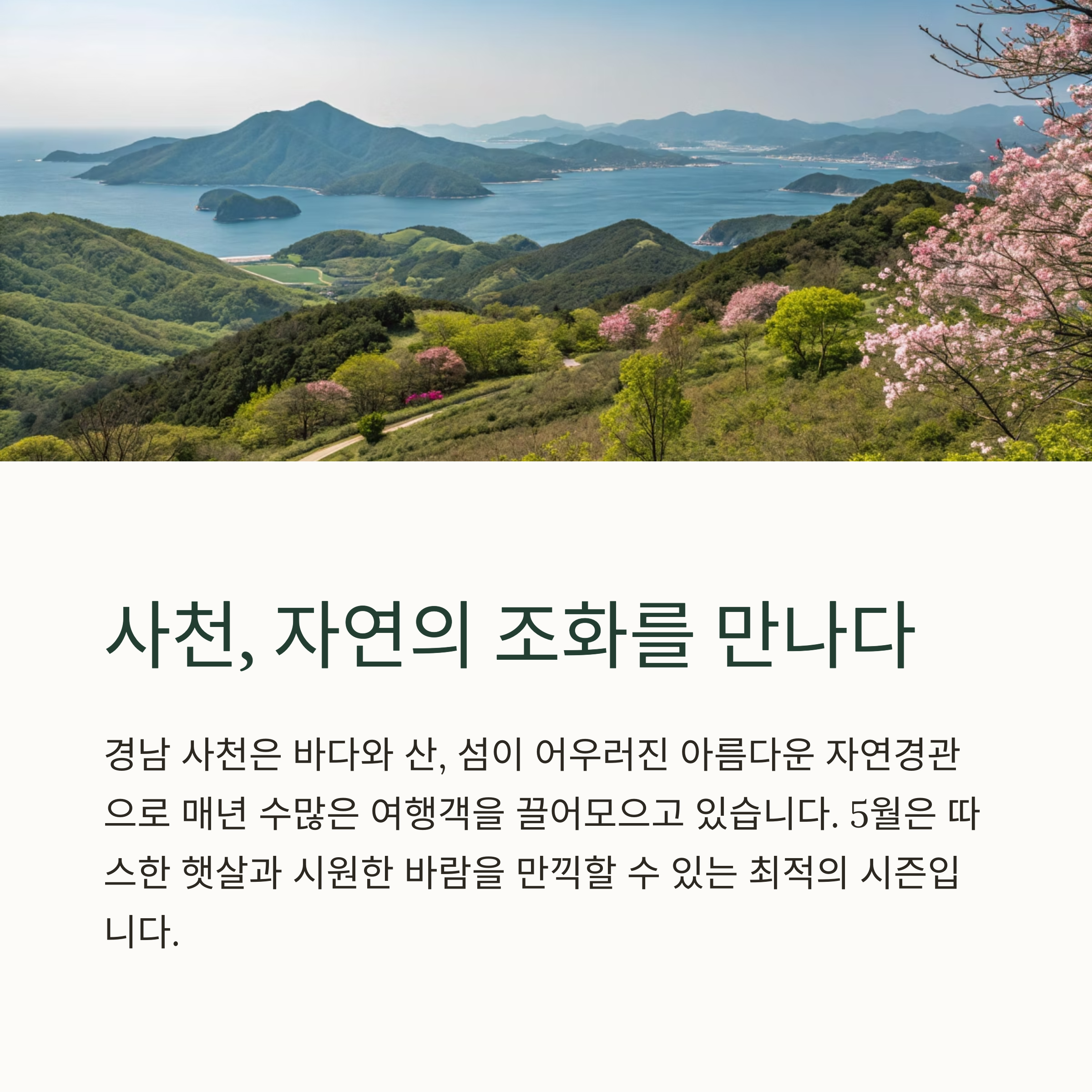 경남 사천은 바다와 산, 섬이 어우러진 아름다운 자연경관으로 매년 수많은 여행객을 끌어모으고 있습니다.