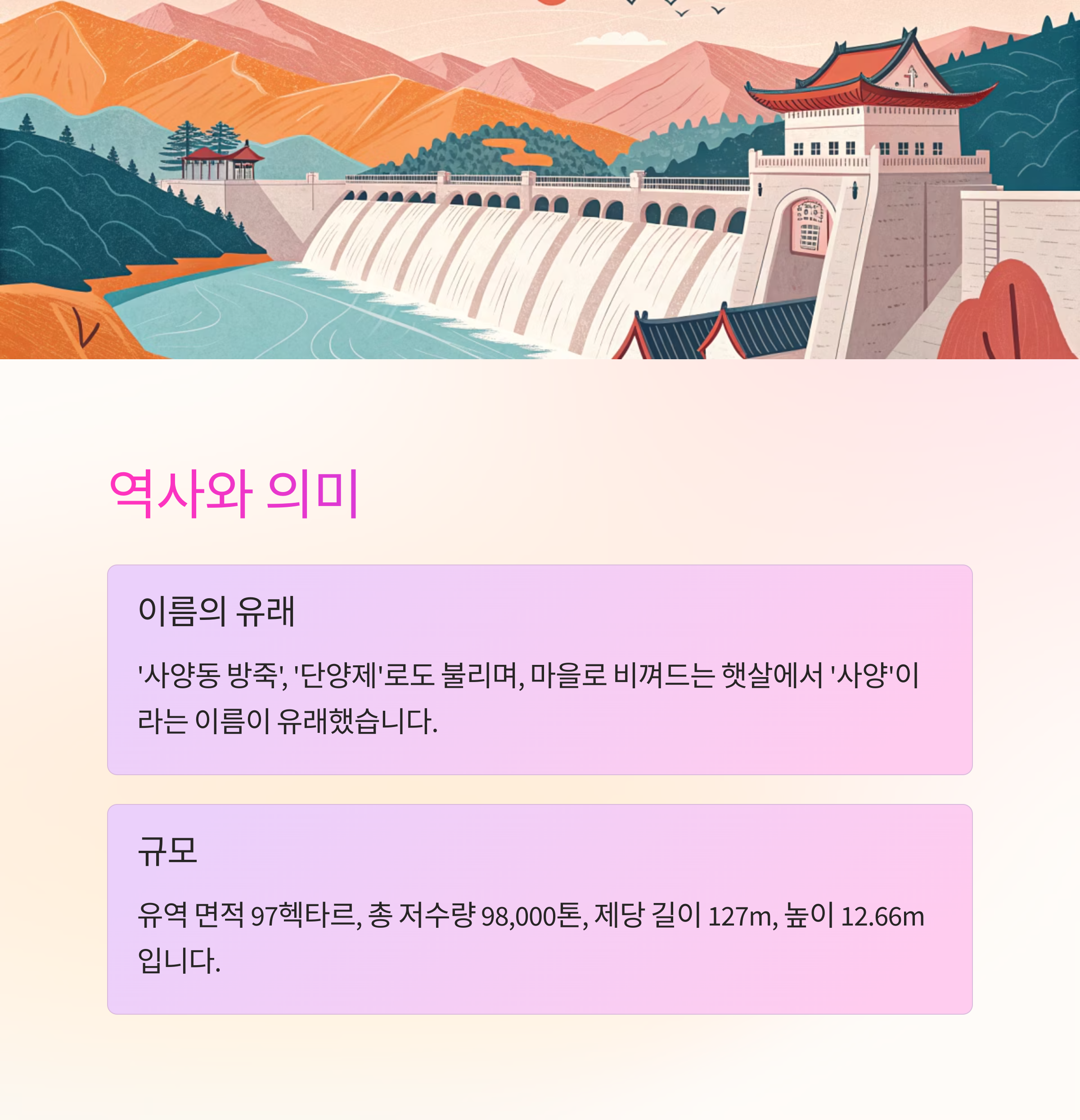 사양저수지의 역사적 의미와 규모